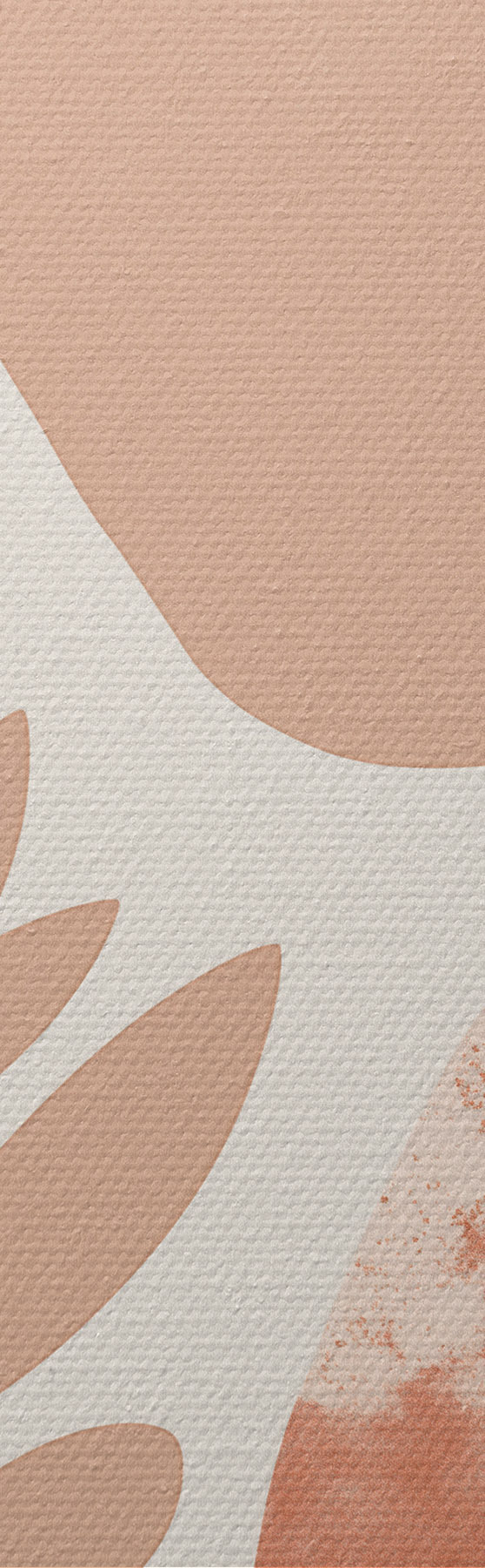 Fototapete Abstrakte Formen, strukturierte Steine und Blätter in gedeckten Pfirsich- und Terrakottatönen, minimalistisch, cremefarbener Hintergrund m01114