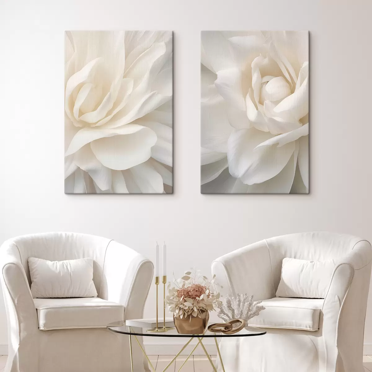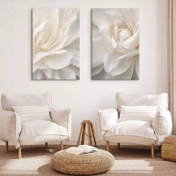 Gemälde Abstrakte weiße Blume mit zarten, geschichteten Blütenblättern, minimalistische Kunst Art. m01120