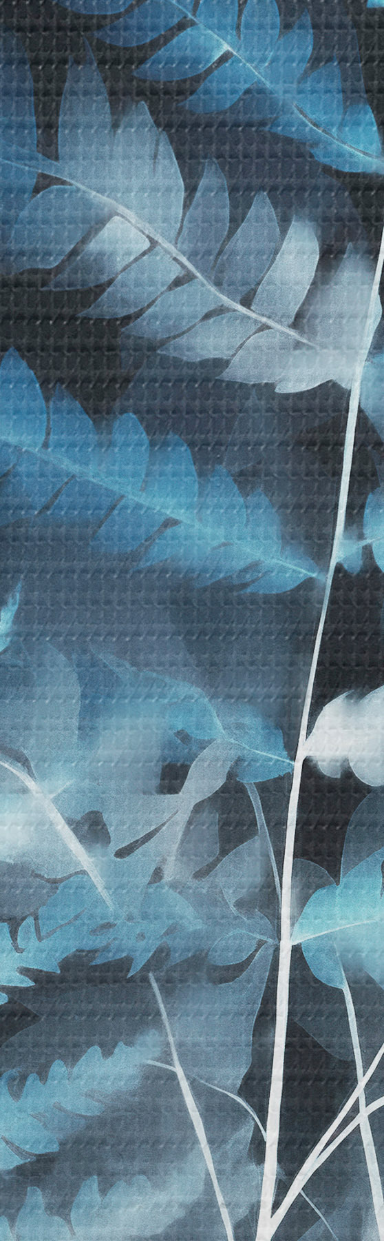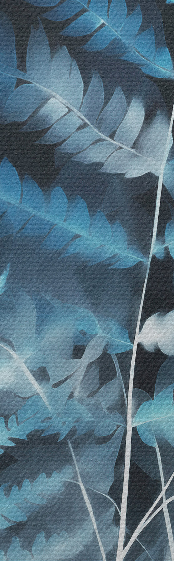 Fototapete Blaue Farne und Pflanzen vor einem dunklen, strukturierten Hintergrund, mit Fokus auf den komplexen Details, Röntgeneffekt m01121