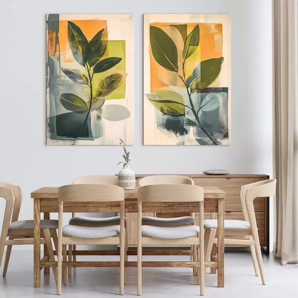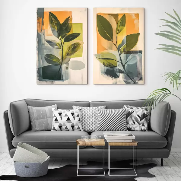 Gemälde Zweige mit Blättern auf abstraktem Hintergrund Art. m01132