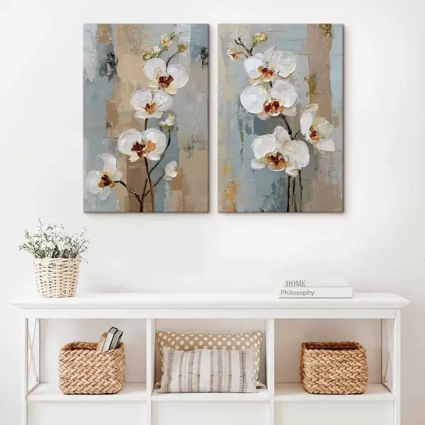 Gemälde weiße Orchideenblüten im Stil eines Ölgemäldes Art. m01175