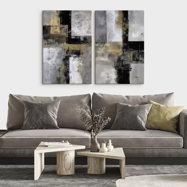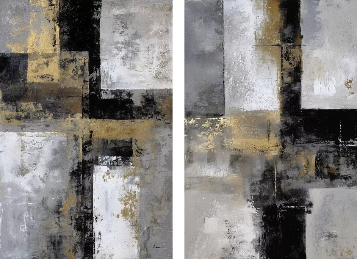 Gemälde zeitgenössische strukturelle Abstraktion in Schwarz-, Grau- und Weißtönen Art. m01179