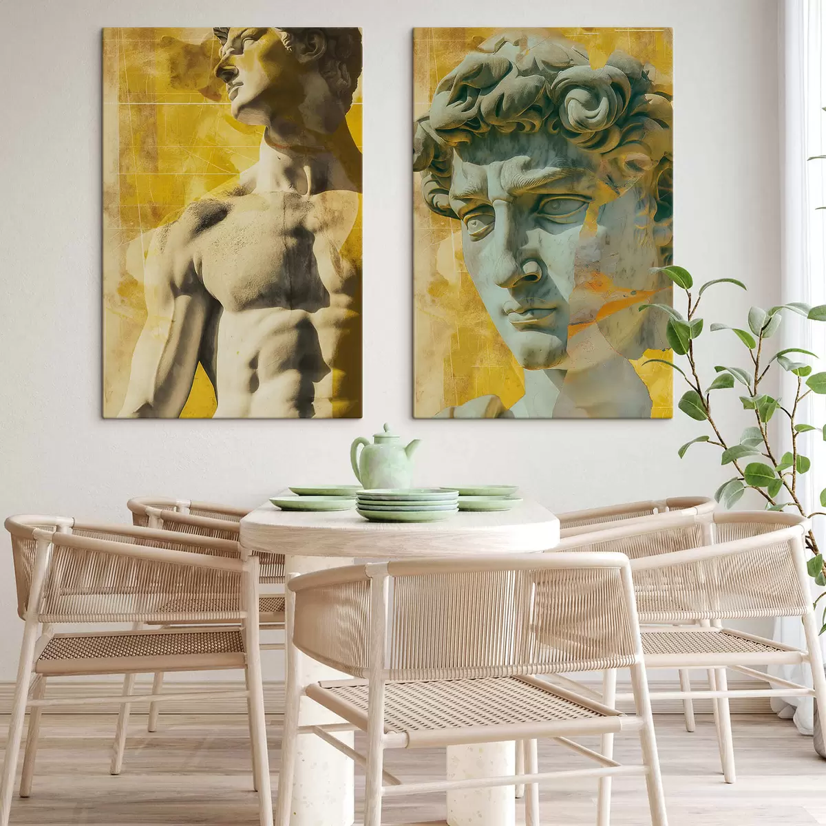 Drei Materialtypen stehen zur Verfügung: Economic Canvas - ein dichtes und haltbares Material für den Digitaldruck, identisch mit Malerleinwand, wasserfeste Oberfläche, realistische Wiedergabe von Details, mittelkörniges Material. Premium Canvas - die Textur ähnelt der einer Malerleinwand (verwobene kleine Fäden). Weiche, detaillierte Wiedergabe des Bildes auf einer matten Oberfläche. Eco-Premium - hochwertiges Gewebe aus 100% Baumwolle. Dank der natürlichen Baumwollfasern ist das Material langlebig und verschleißfest. Hervorragende Farbwiedergabe und Detailtreue.