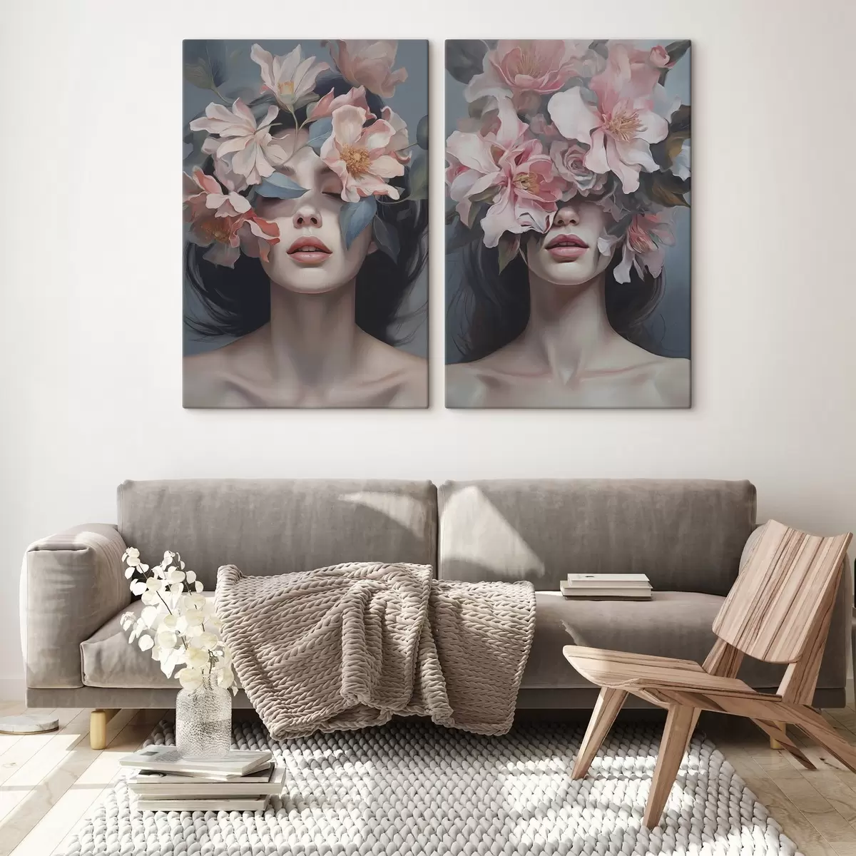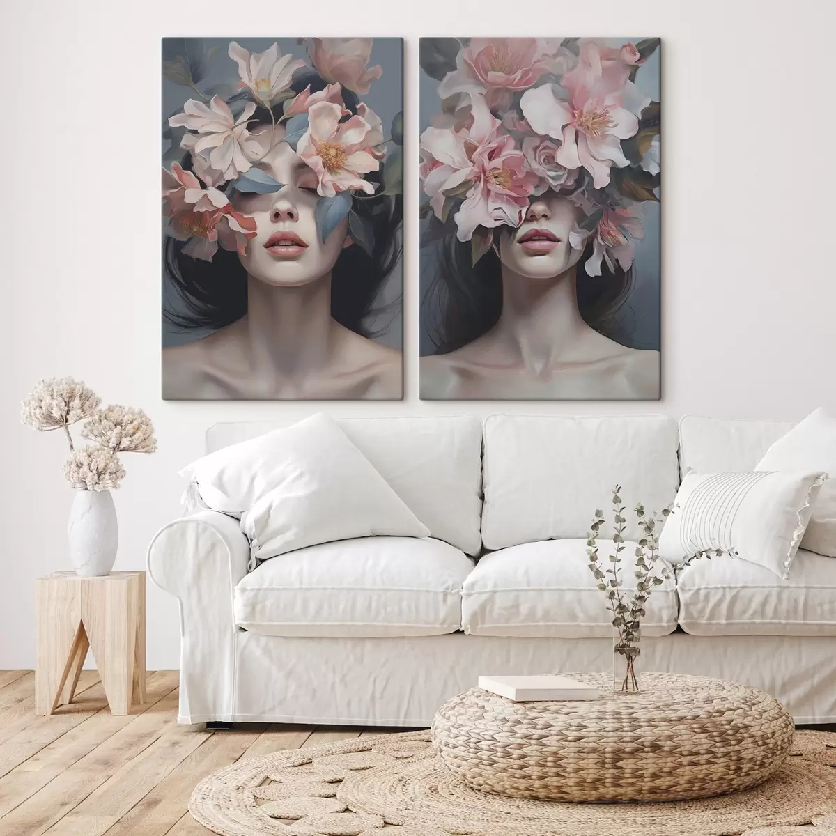 Gemälde Abstraktes Frauenporträt mit Blumen Art. m01221