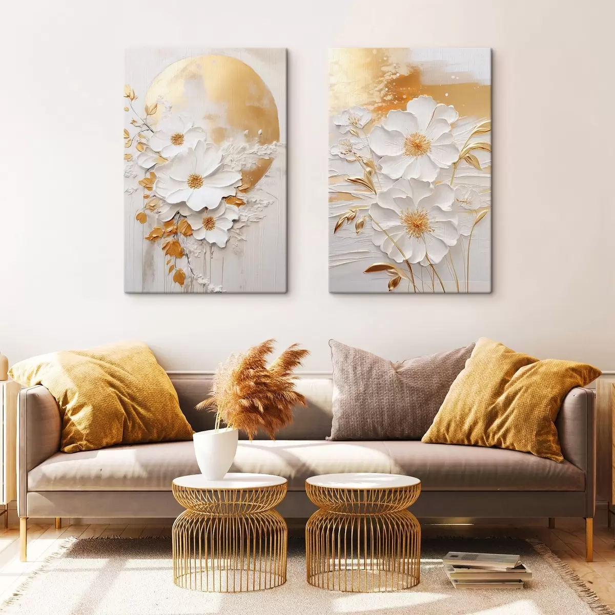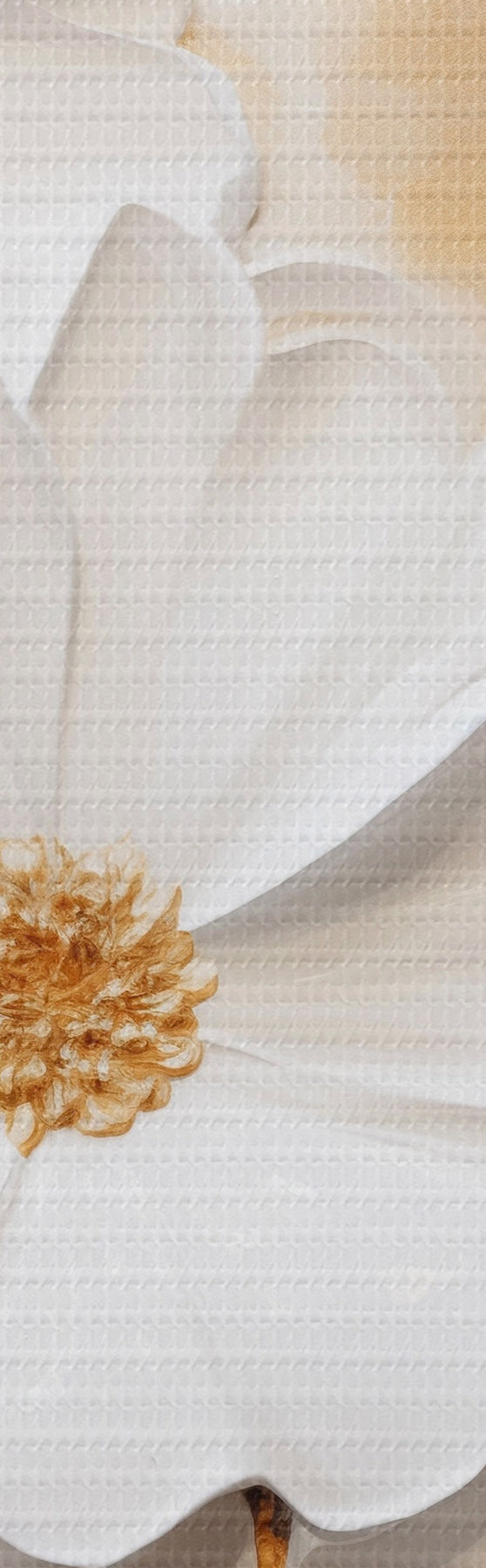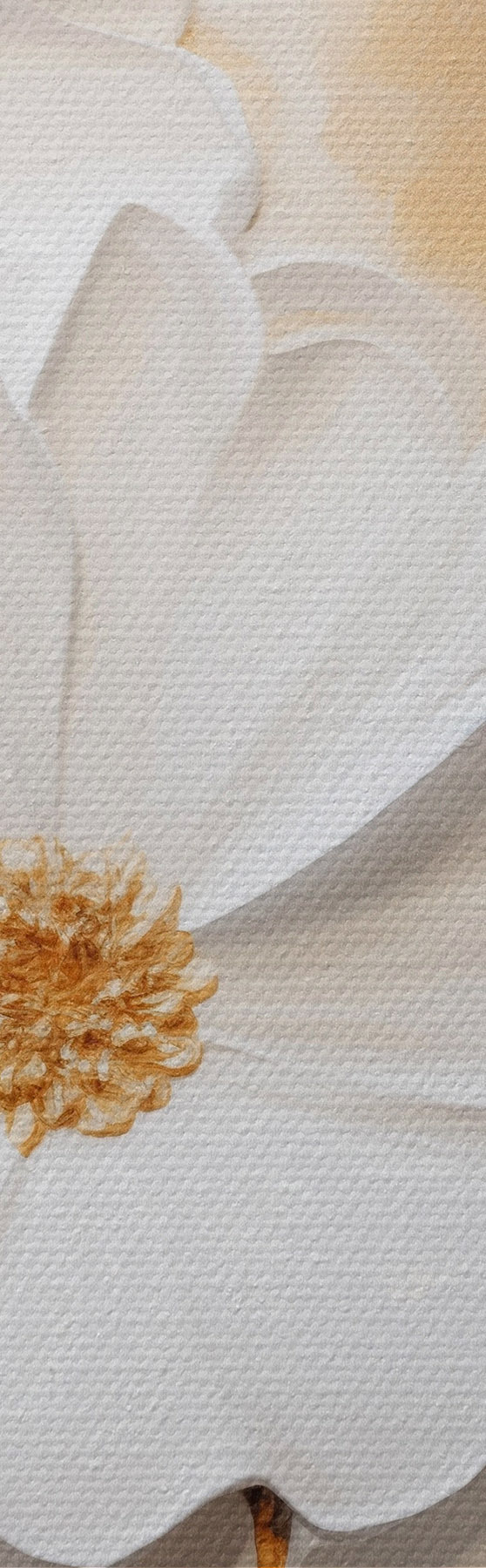 Fototapete Weiße Blumen mit gelben Akzenten und zarten Blättern vor einem strukturierten Hintergrund, moderne Kunst m01233