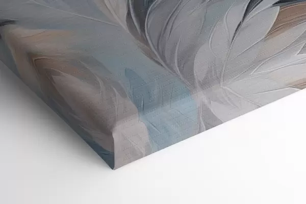 Gemälde Abstrakte Malerei von Federn in Weiß-, Blau- und Brauntönen, mit einer weichen, fließenden Textur und einem hellen Hintergrund Art. m01234
