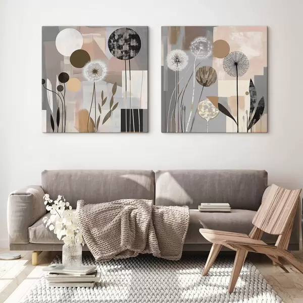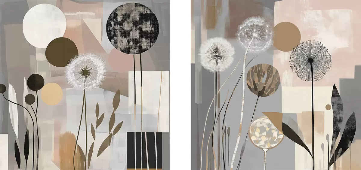 Gemälde Abstraktion mit Löwenzahn und Pflanzen Art. m01276
