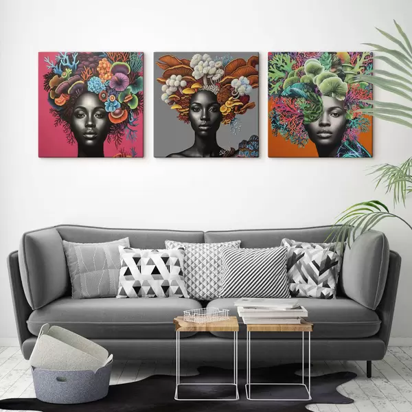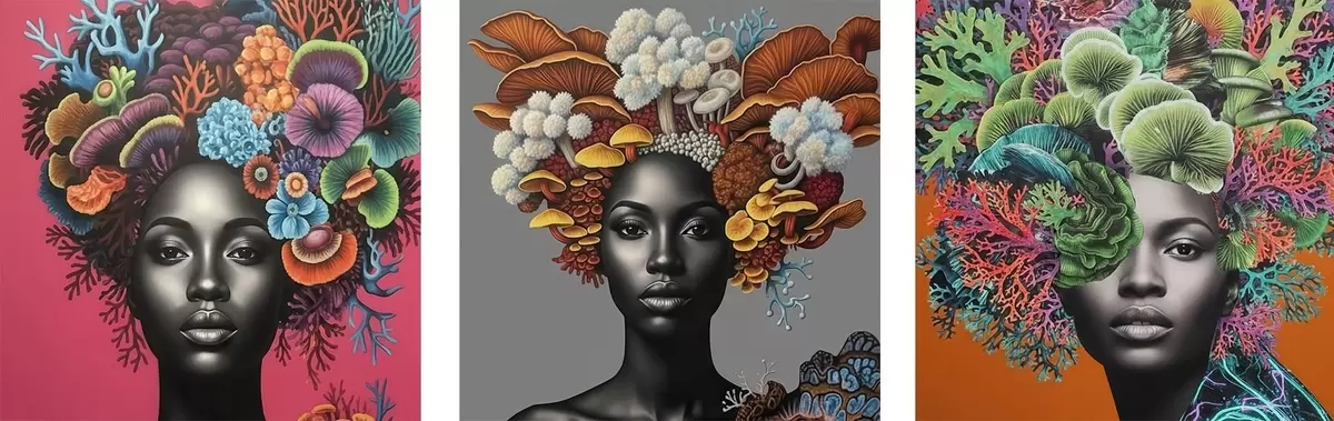 Gemälde Psychedelisches Porträt einer Frau mit Pilzen Art. m01308