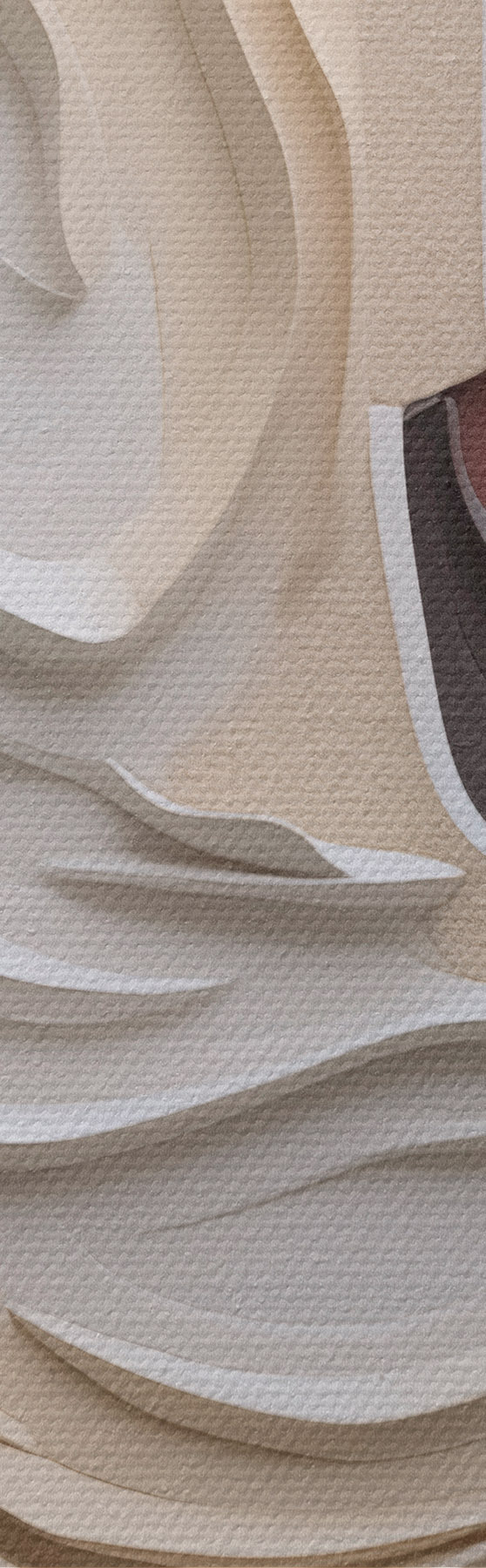 Um die Leinwand auf Keilrahmen zu spannen, ohne das Bild zu beschädigen, verwenden wir ein gespiegeltes Bild.