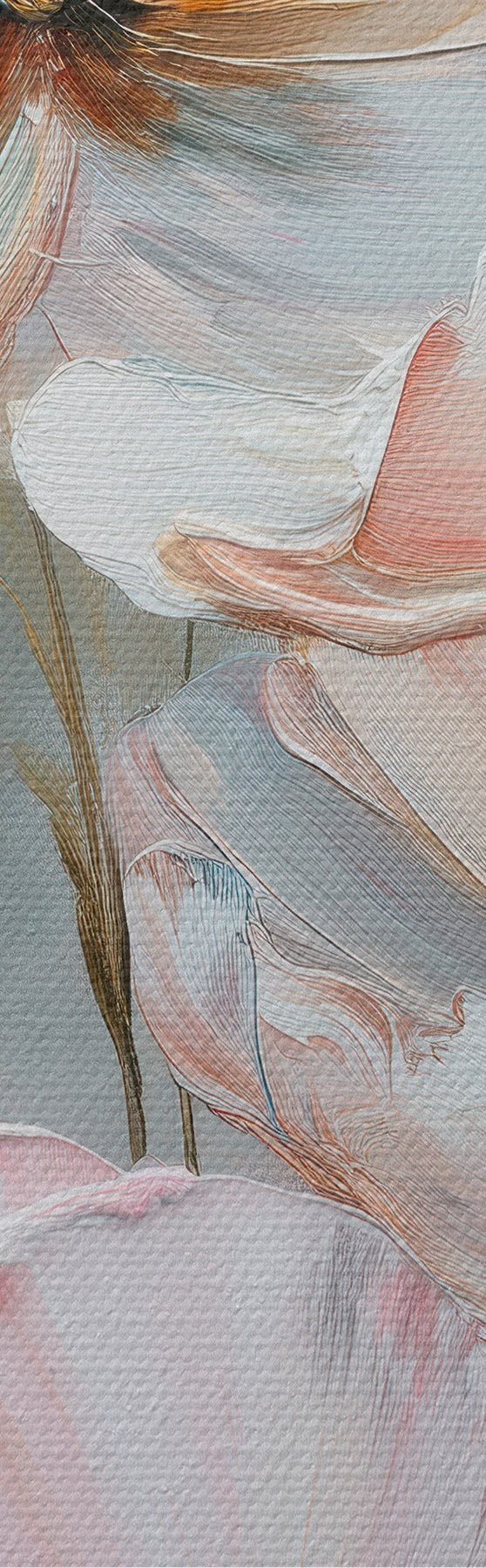 Fototapete Blumendiptychon in einer beige-korallenfarbenen Farbpalette im Stil eines Ölgemäldes m30029
