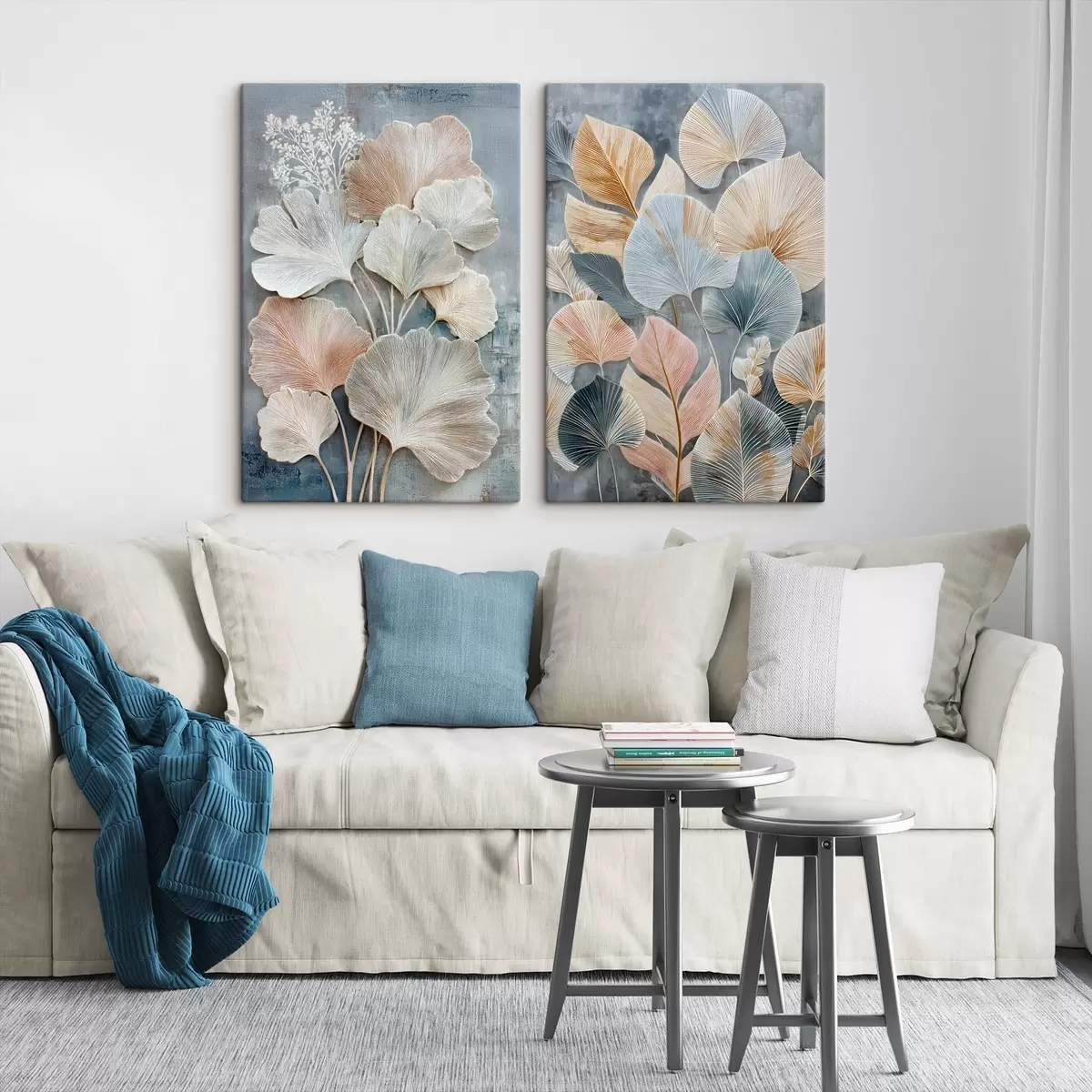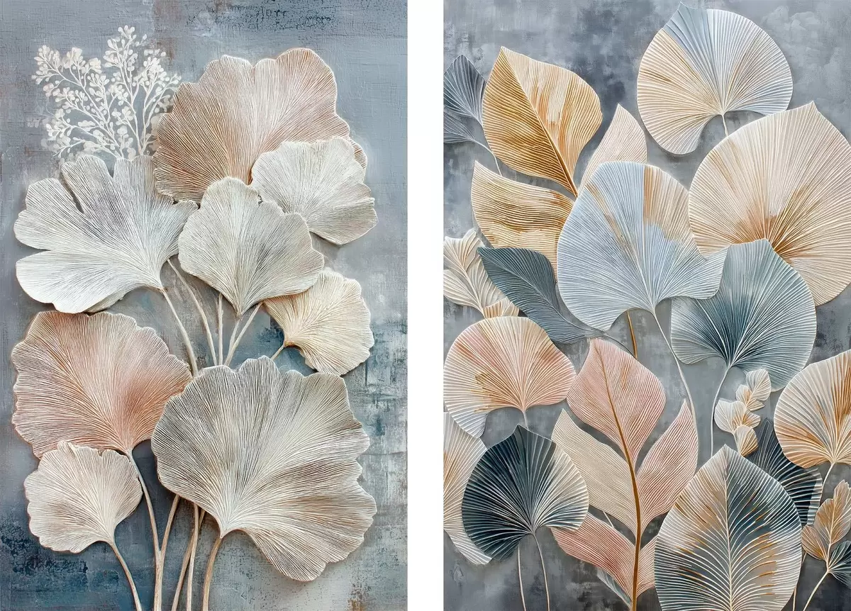 Gemälde Abstrakte Komposition mit dekorativem Blattwerk in einer grau-beigen Farbpalette Art. m30030