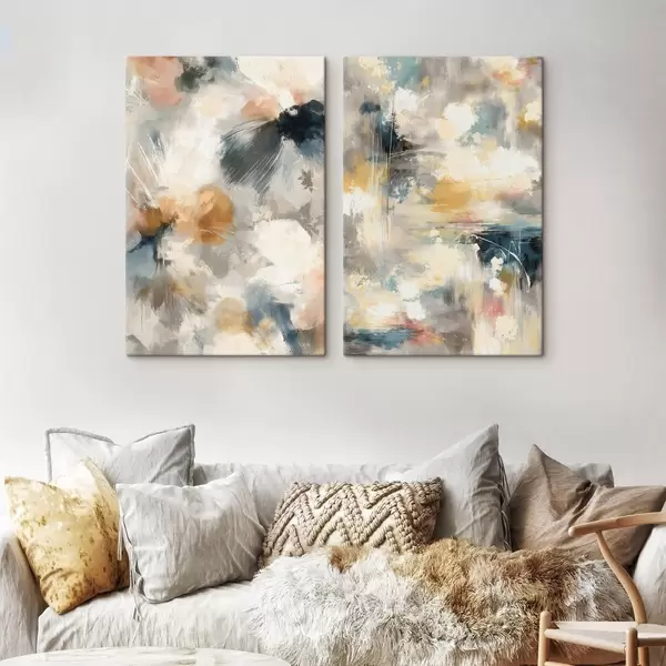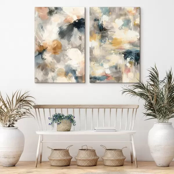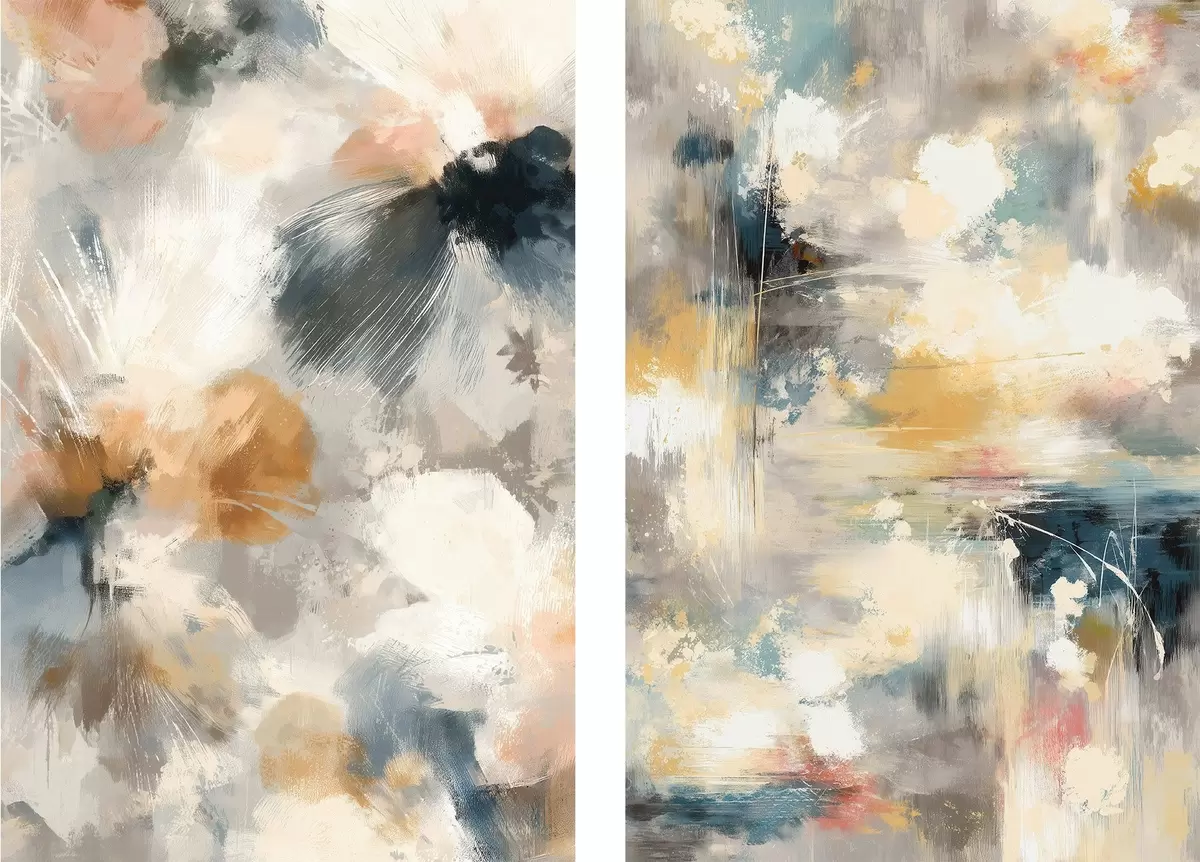 Fototapete Diptychon mit verschwommenen Blumenformen im Stil der zeitgenössischen Kunst m30033