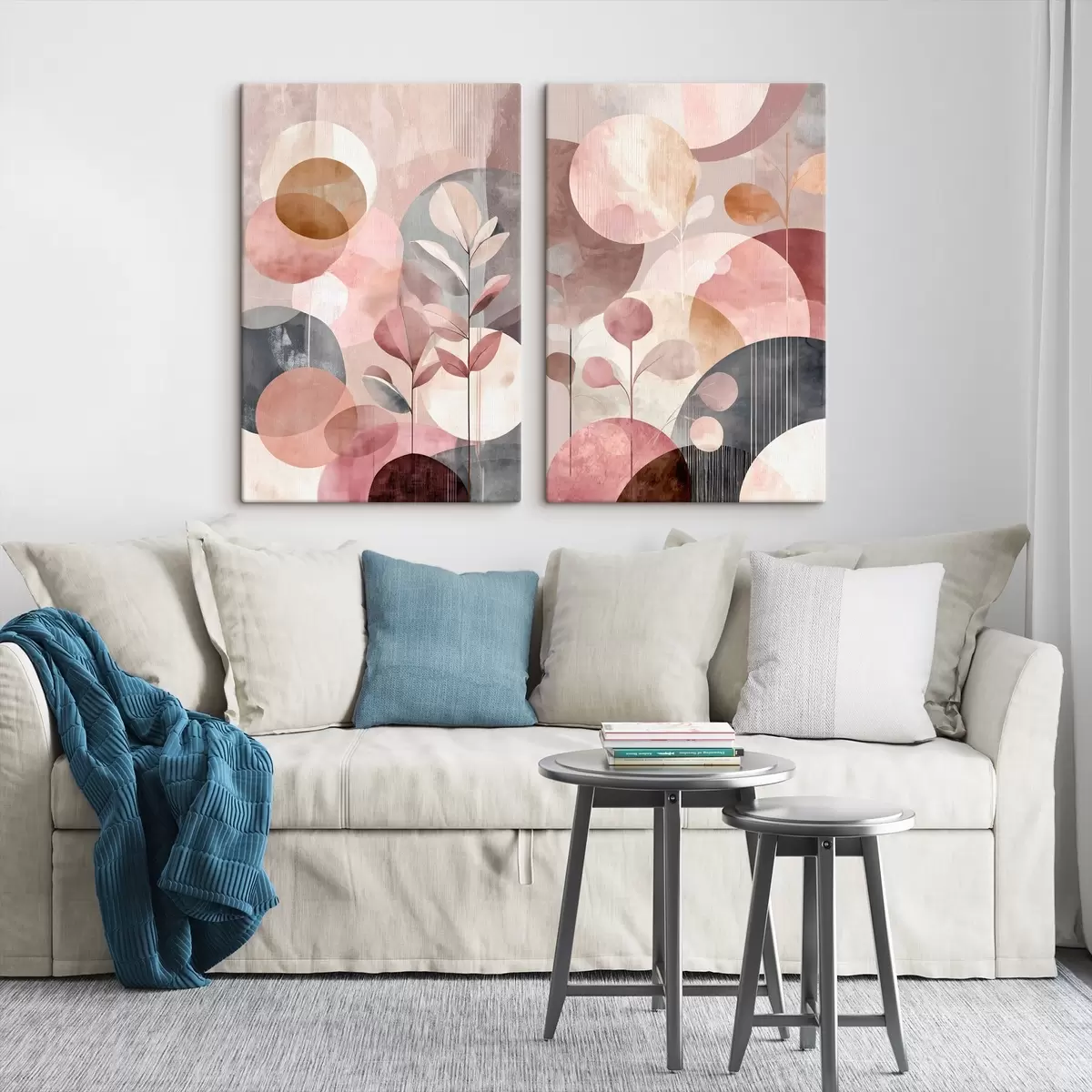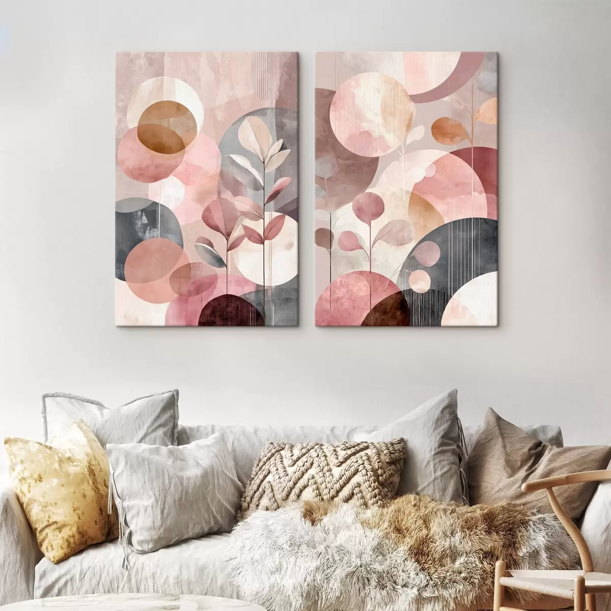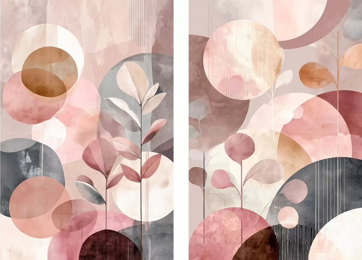 Gemälde Blumenkunst in Pastelltönen mit geometrischen Elementen Art. m30036