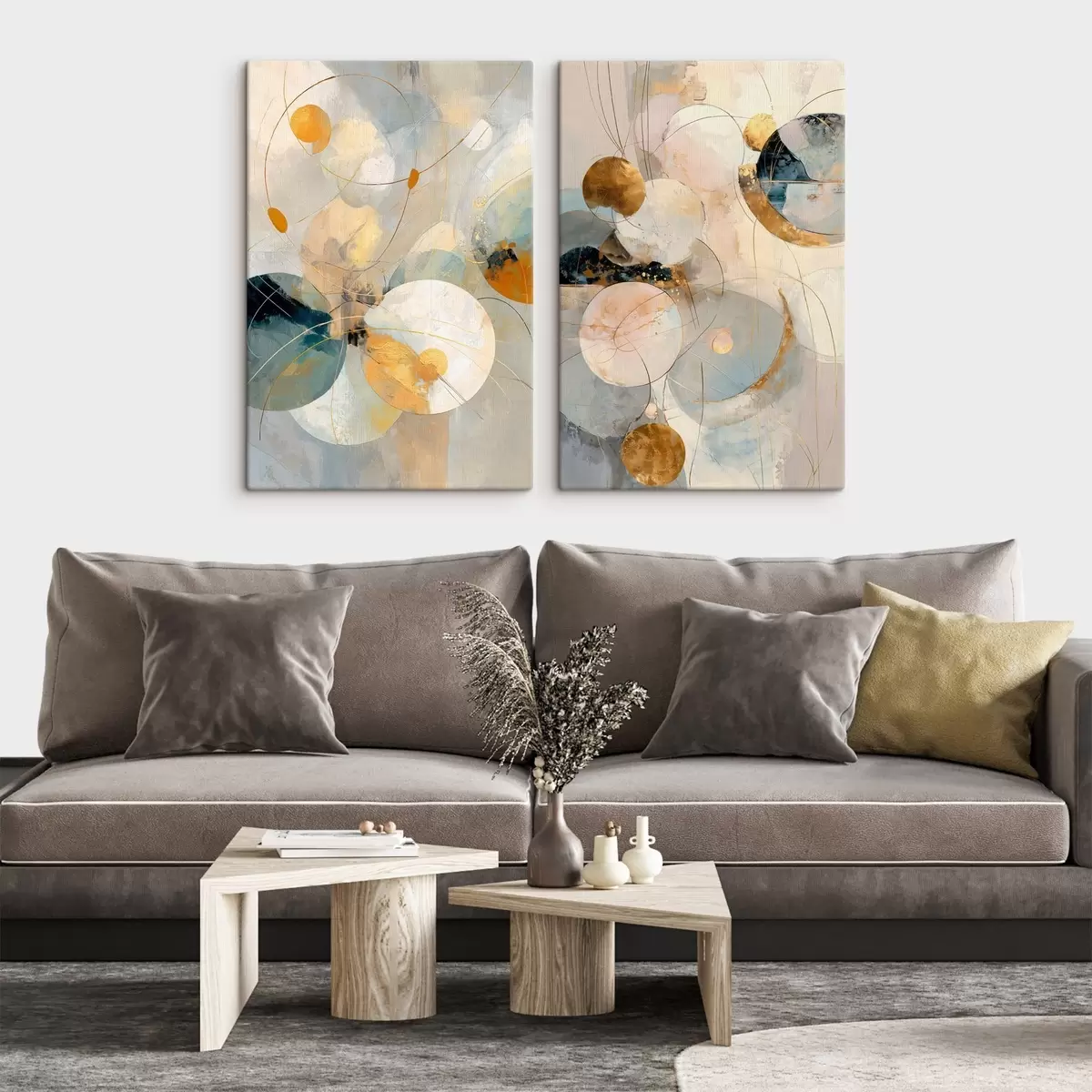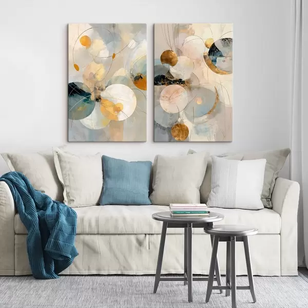 Gemälde Dekorative Kunst in Blau-Creme-Tönen mit sanftem Lichteffekt Art. m30039