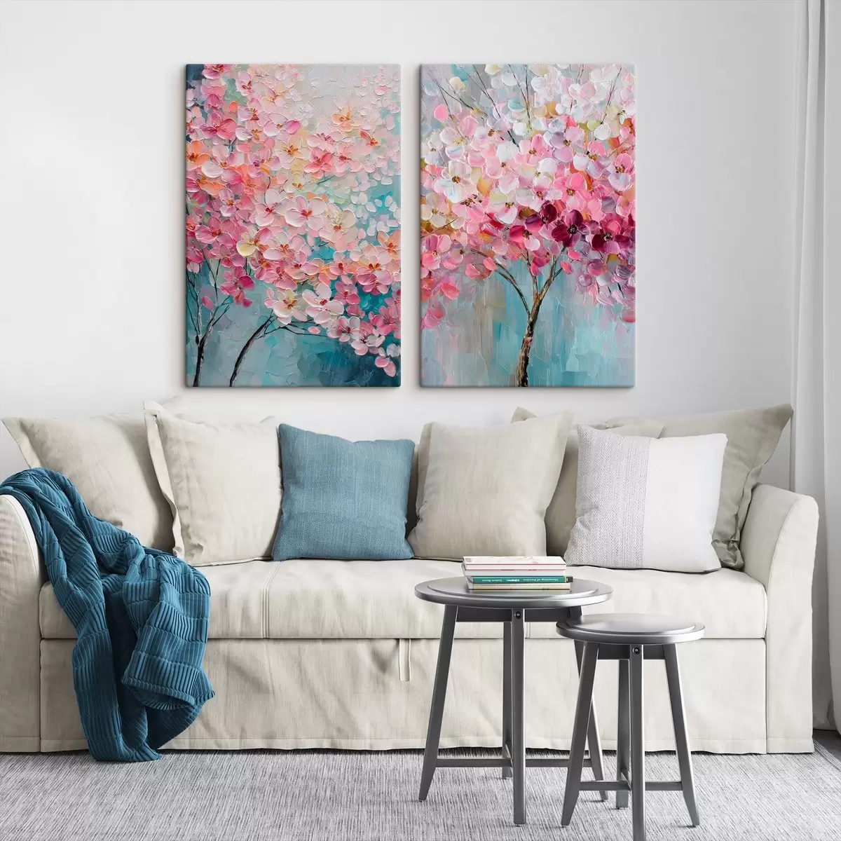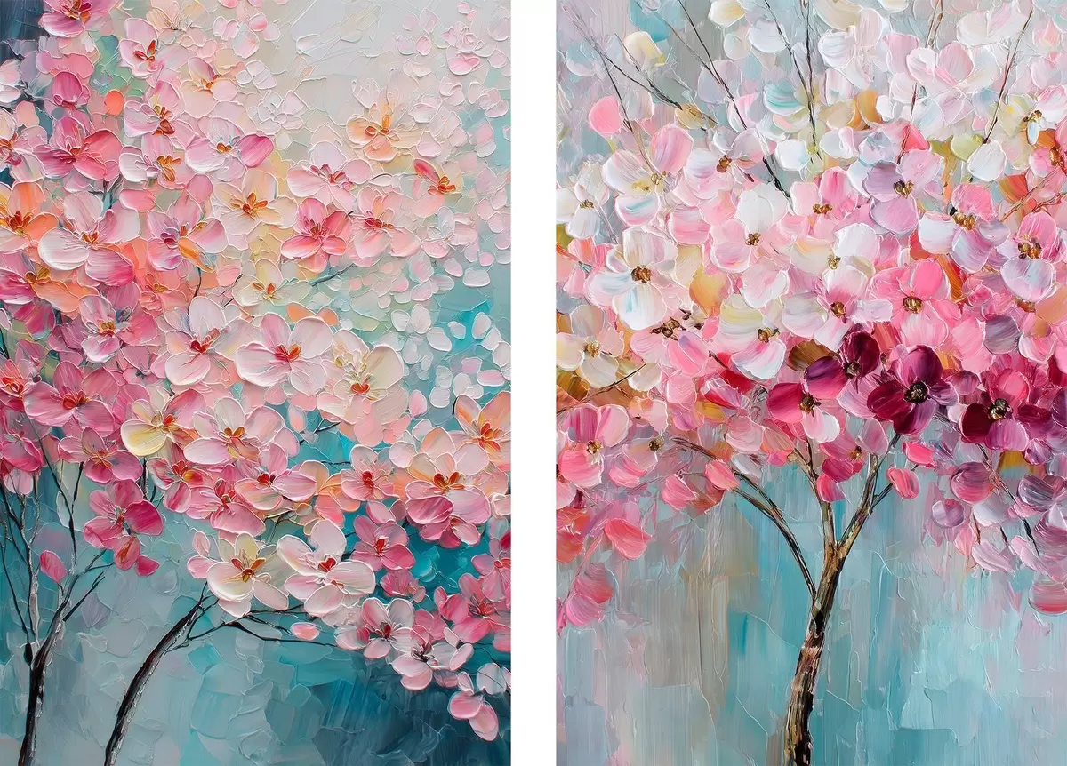 Gemälde Blühender Baum mit rosa Blüten im Stil eines Ölgemäldes Art. m30040