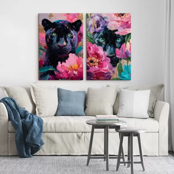 Gemälde Schwarzer Panther zwischen Pfingstrosen Art. m30090