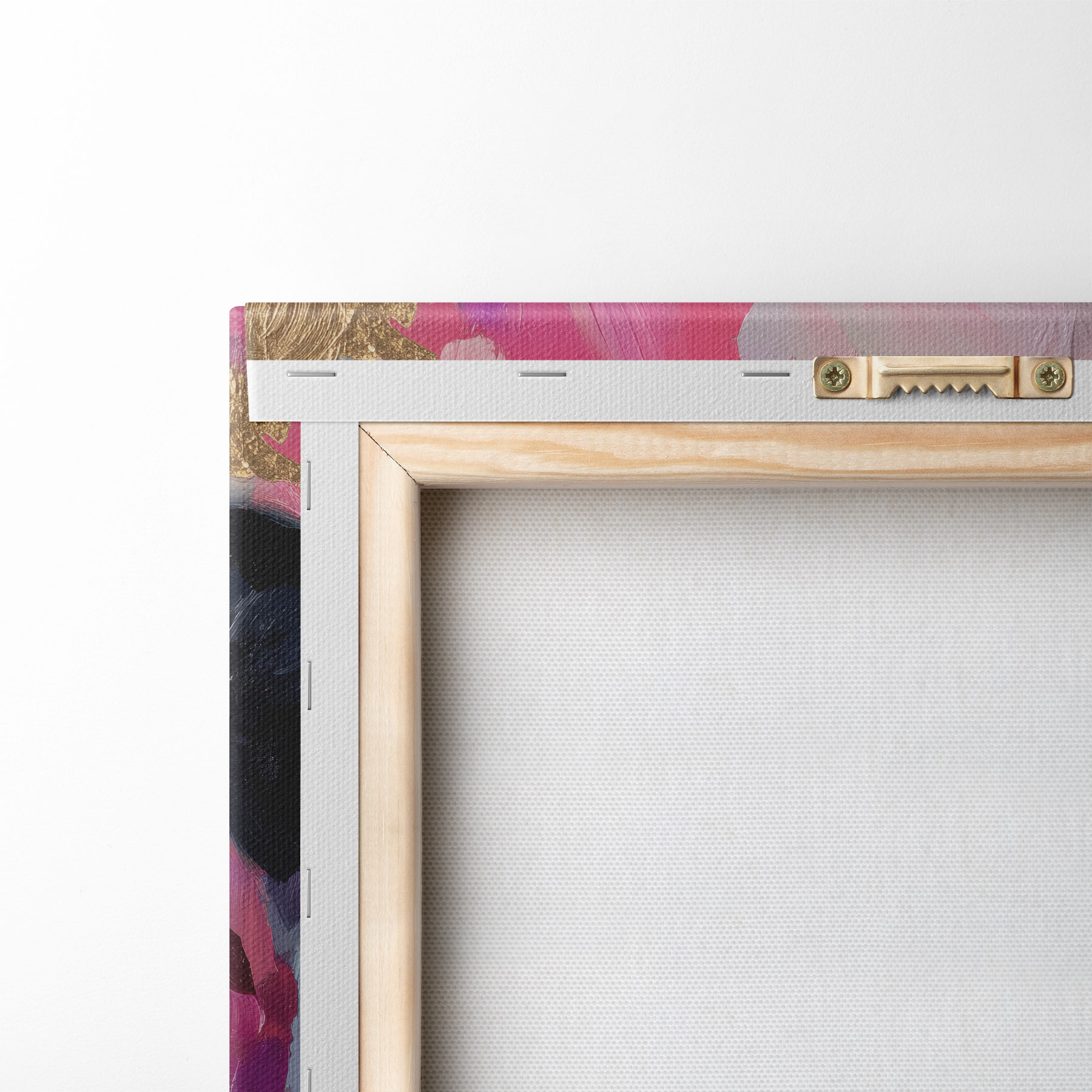 Um die Leinwand auf Keilrahmen zu spannen, ohne das Bild zu beschädigen, verwenden wir ein gespiegeltes Bild.