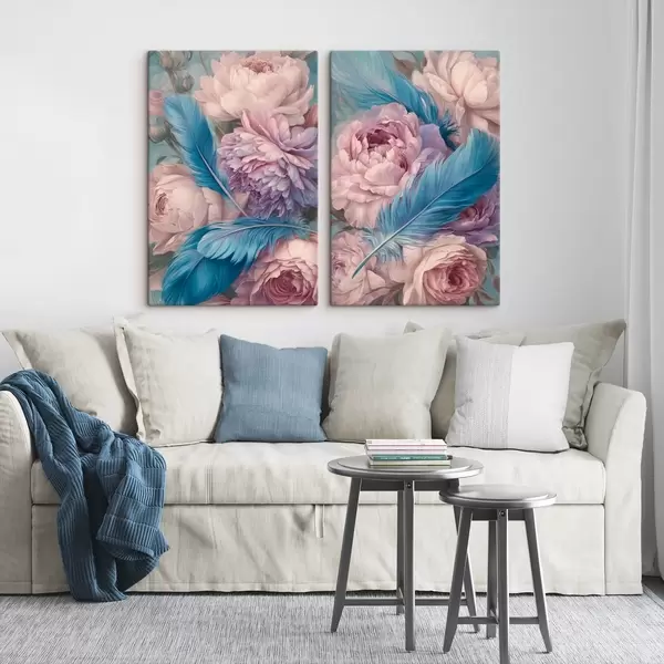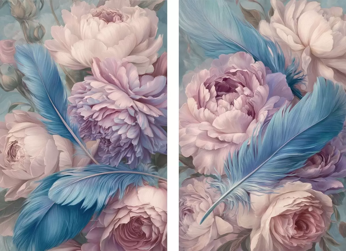 Gemälde Federn zwischen Pfingstrosen Art. m30092