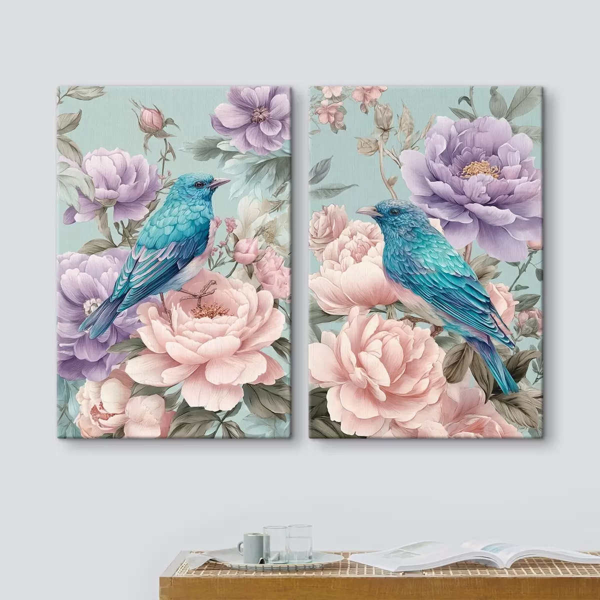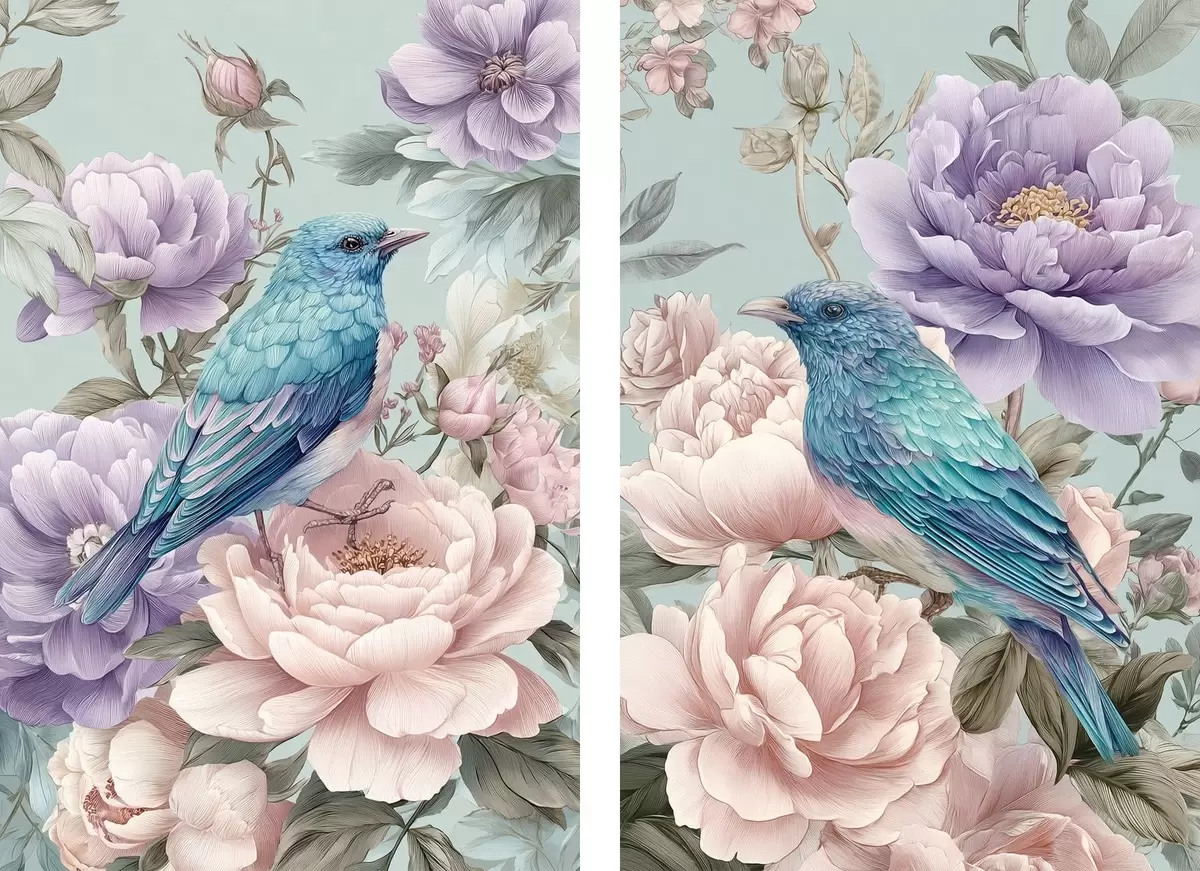 Gemälde Singende Vögel in Rosen Art. m30094