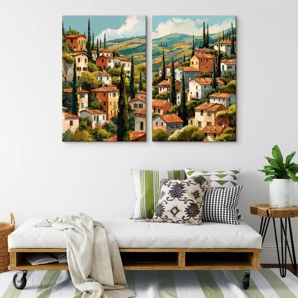 Gemälde Mediterranes Bergdorf, übereinanderliegende Häuser in warmen Farbtönen mit Terrakottadächern Art. m30097