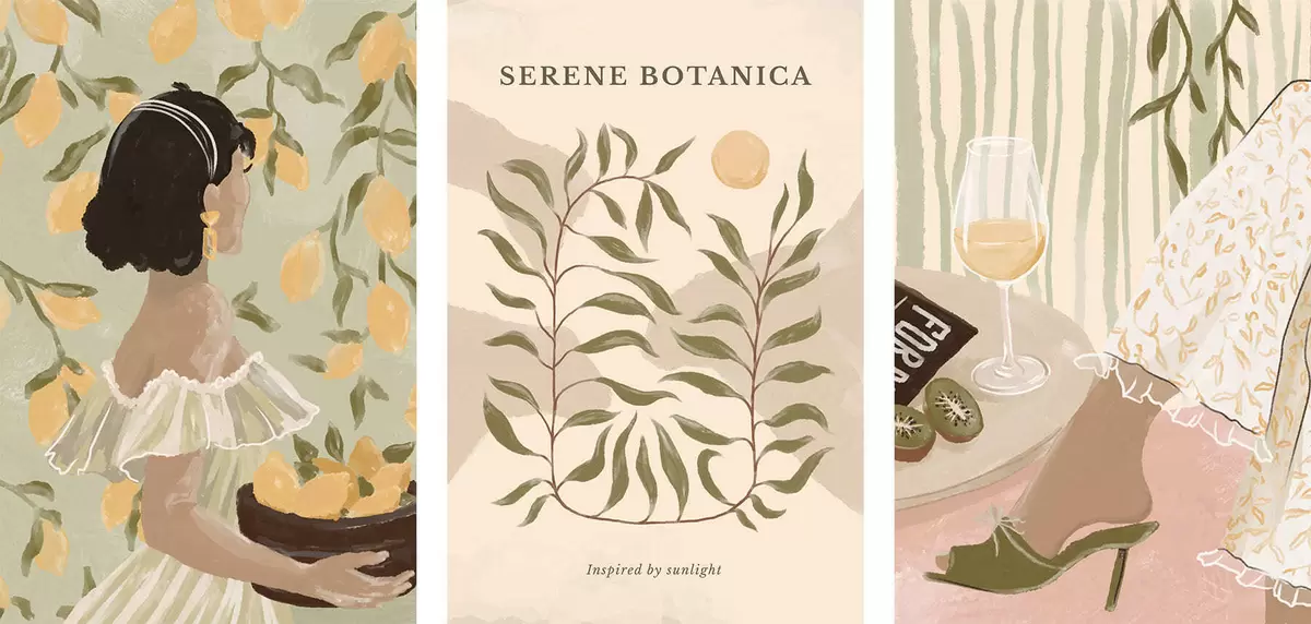 Gemälde Frau mit Zitronen, Poster und Tisch Art. m30098