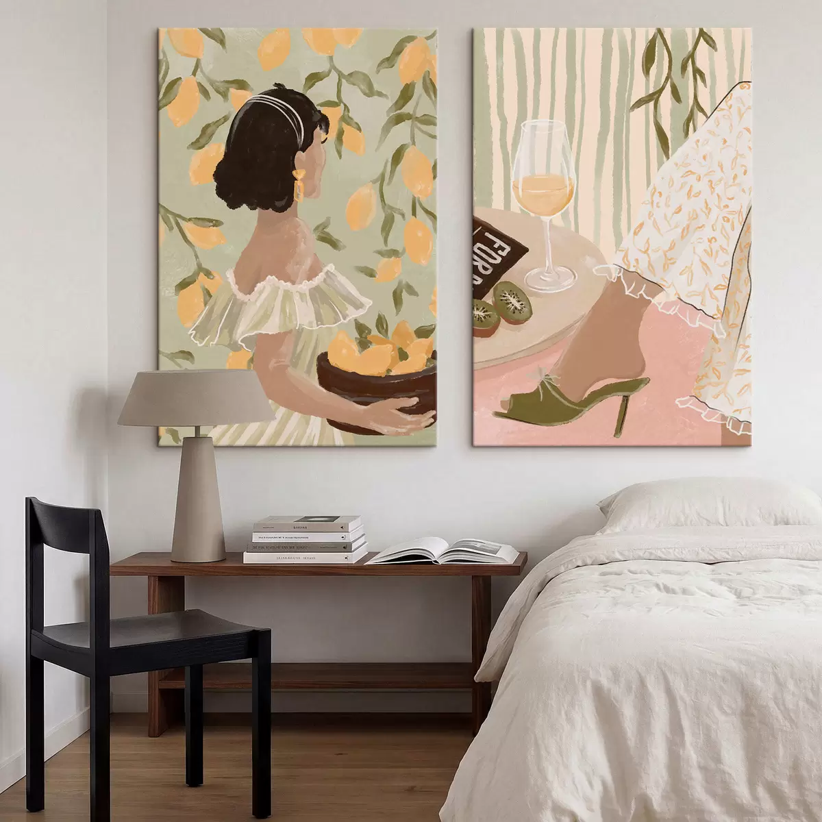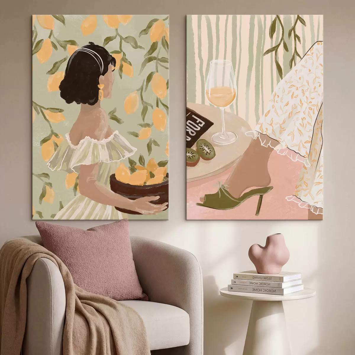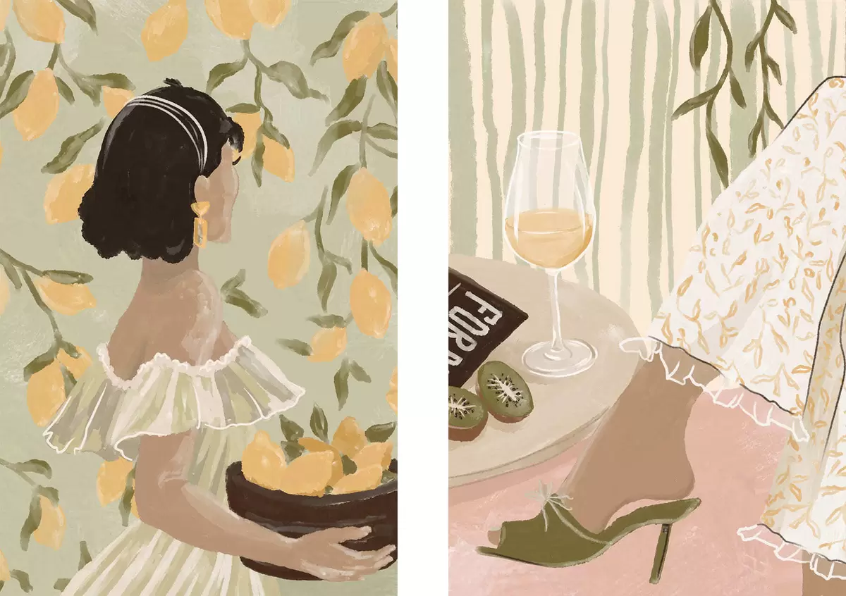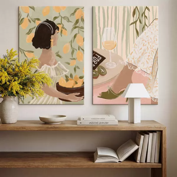 Gemälde Frau mit Zitronen und Tisch mit Glas Art. m30104