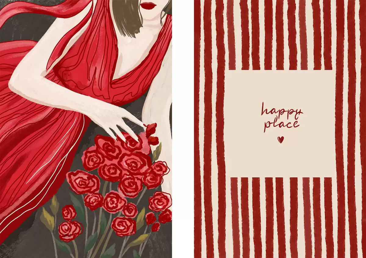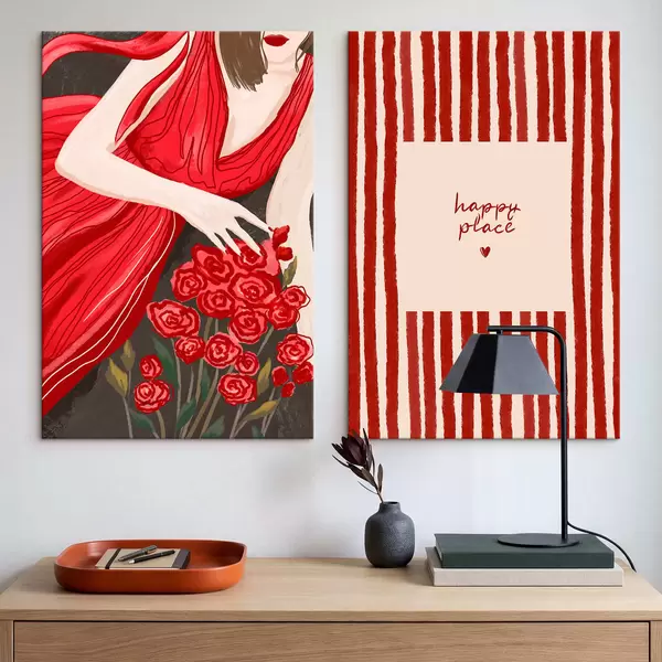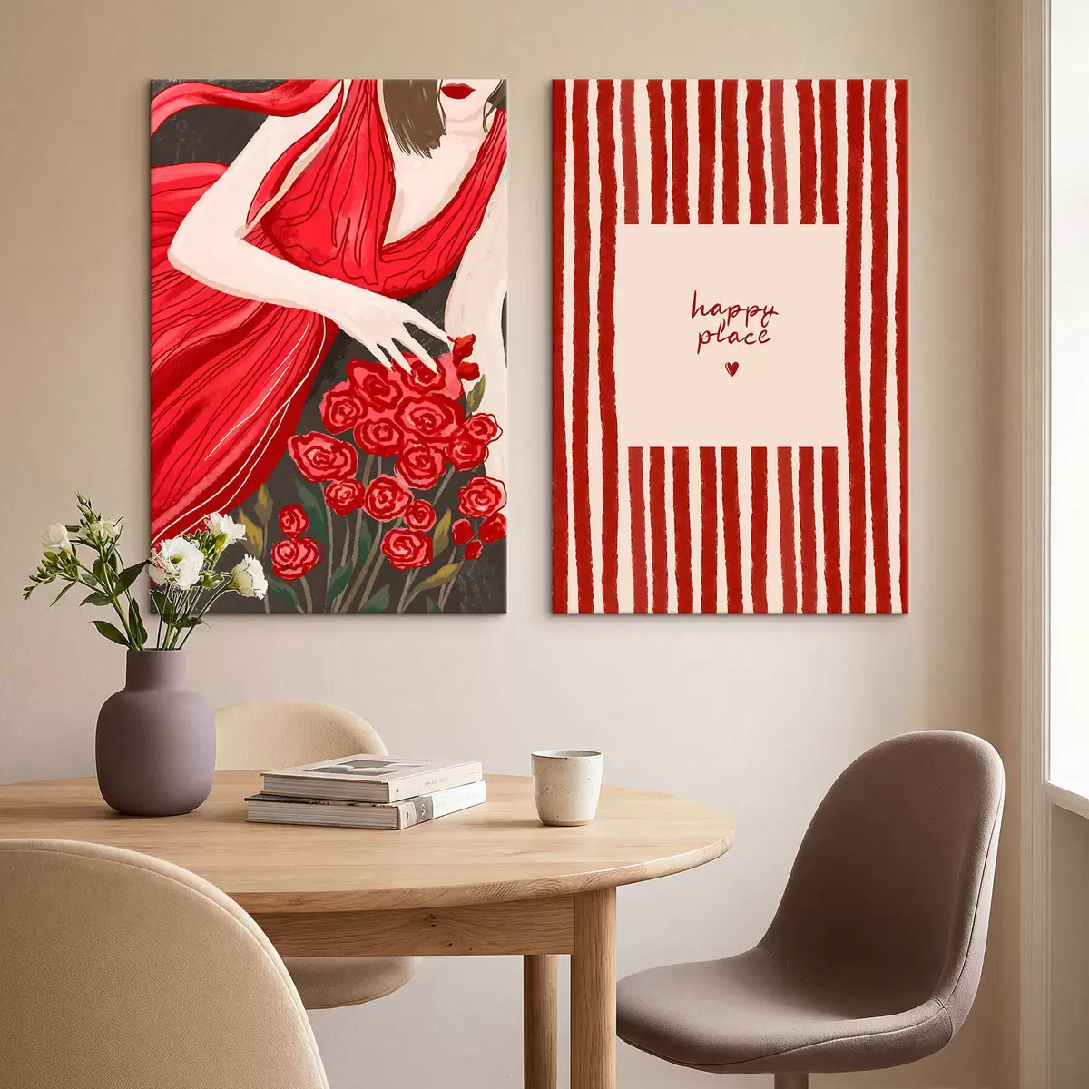 Gemälde Frau mit Rosen und rotem Muster Art. m30107