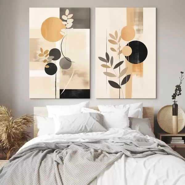 Gemälde Abstraktionen mit Blättern und Kreisen Art. m30133