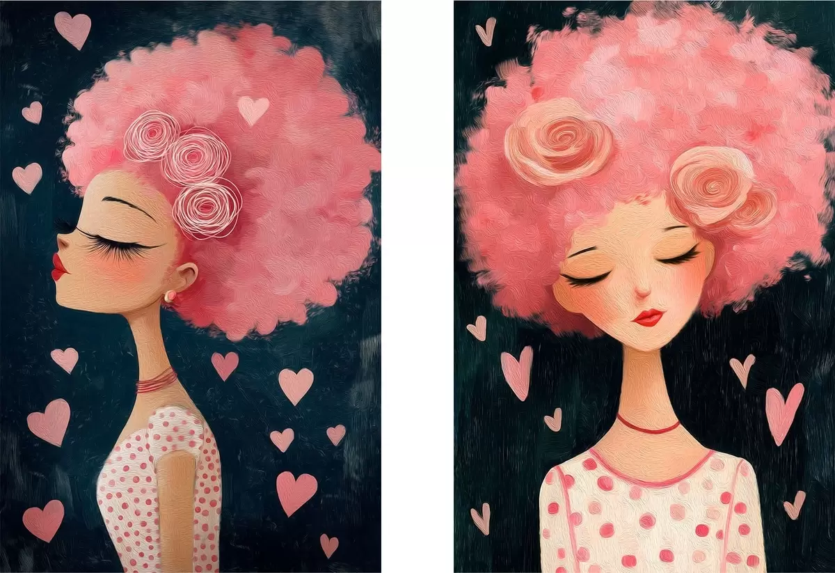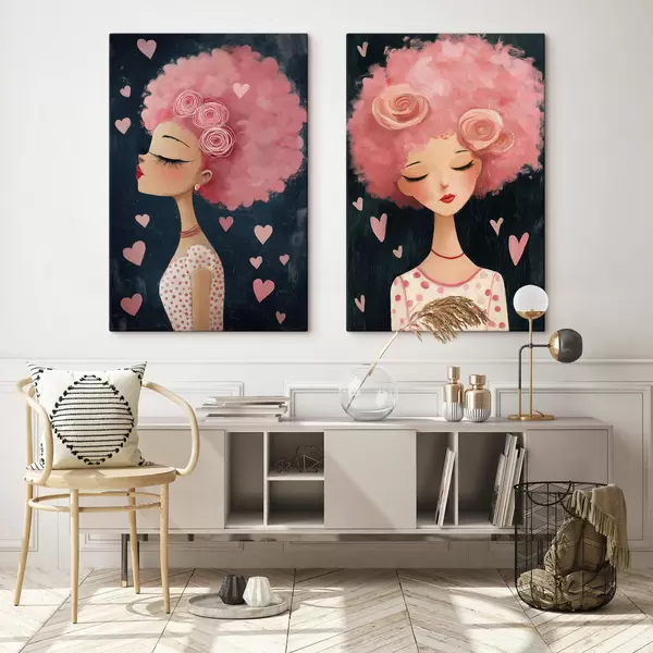 Gemälde Mädchen mit rosa Haaren und Herzen Art. m30156