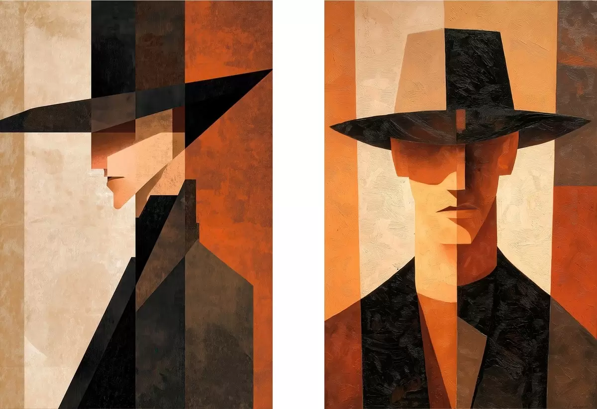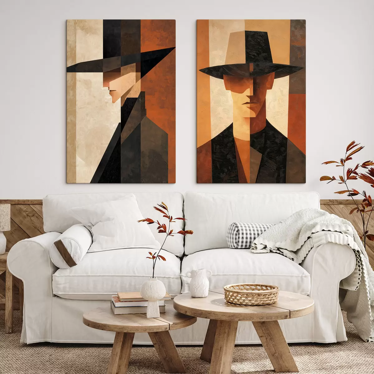 Gemälde Geometrisches Porträt eines Mannes mit Hut Art. m30157