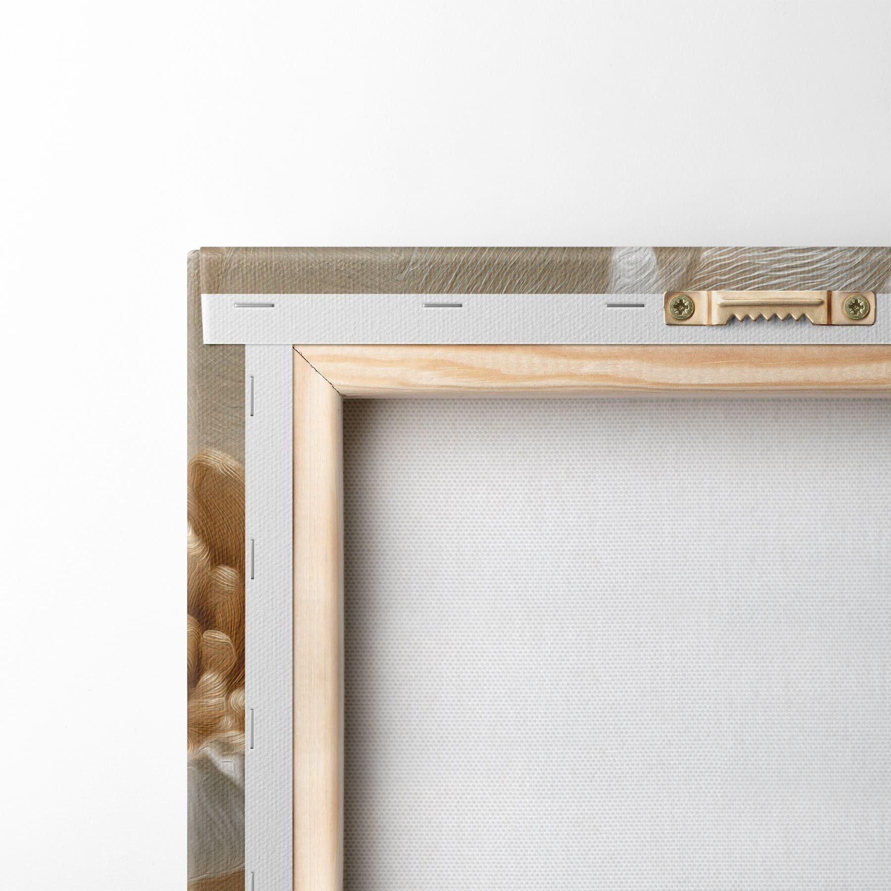Um die Leinwand auf Keilrahmen zu spannen, ohne das Bild zu beschädigen, verwenden wir ein gespiegeltes Bild.