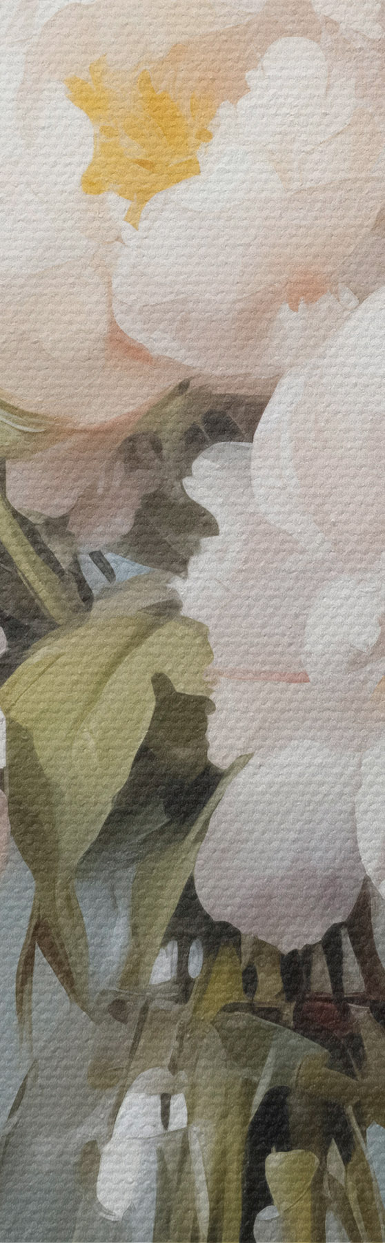 Drei Materialtypen stehen zur Verfügung: Economic Canvas - ein dichtes und haltbares Material für den Digitaldruck, identisch mit Malerleinwand, wasserfeste Oberfläche, realistische Wiedergabe von Details, mittelkörniges Material. Premium Canvas - die Textur ähnelt der einer Malerleinwand (verwobene kleine Fäden). Weiche, detaillierte Wiedergabe des Bildes auf einer matten Oberfläche. Eco-Premium - hochwertiges Gewebe aus 100% Baumwolle. Dank der natürlichen Baumwollfasern ist das Material langlebig und verschleißfest. Hervorragende Farbwiedergabe und Detailtreue.