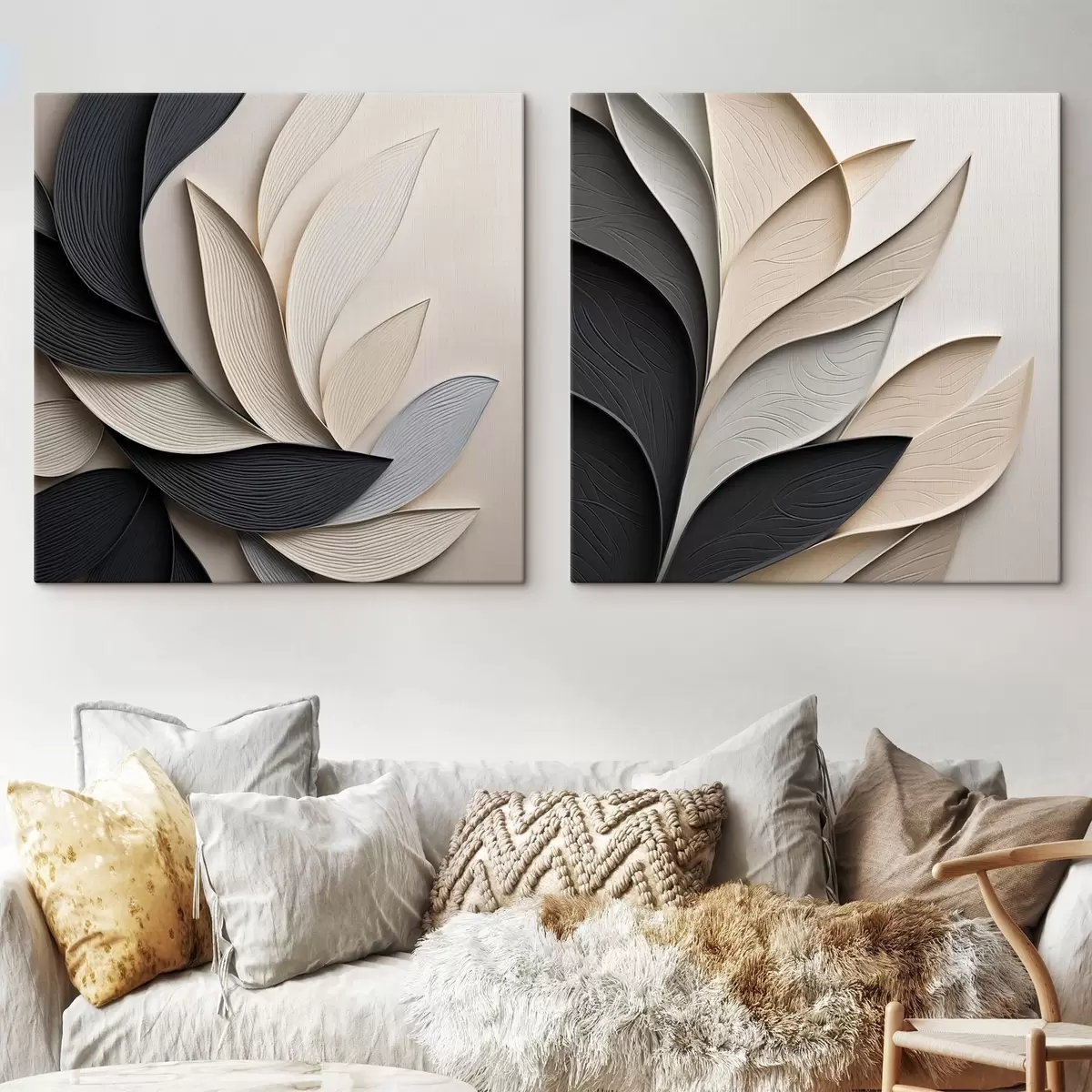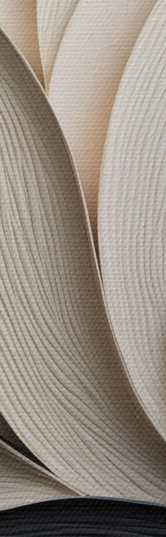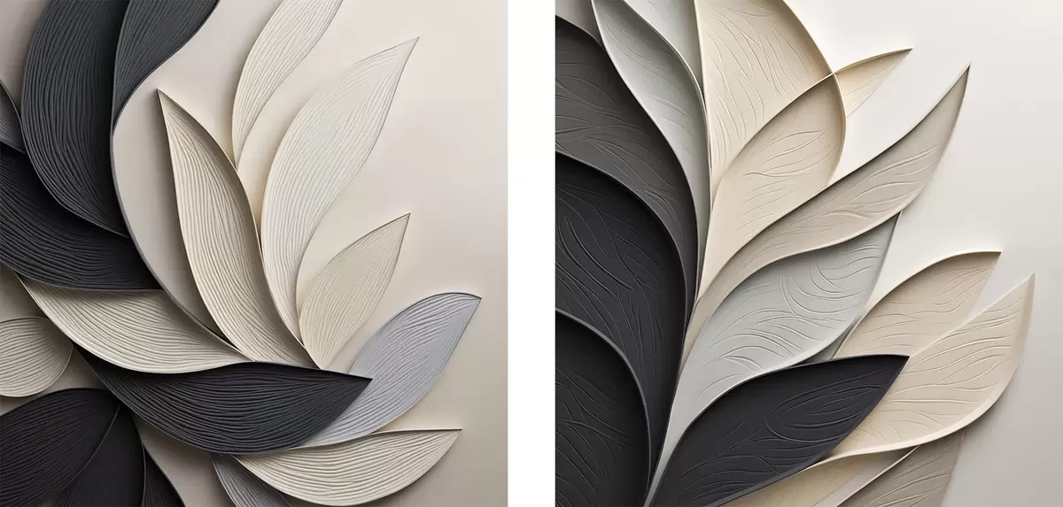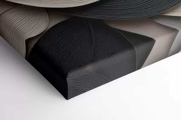 Gemälde Abstrakte Komposition aus übereinanderliegenden Blättern, geschwungenen Formen in Schwarz, Weiß und Beige, strukturierte Kunst Art. m30195