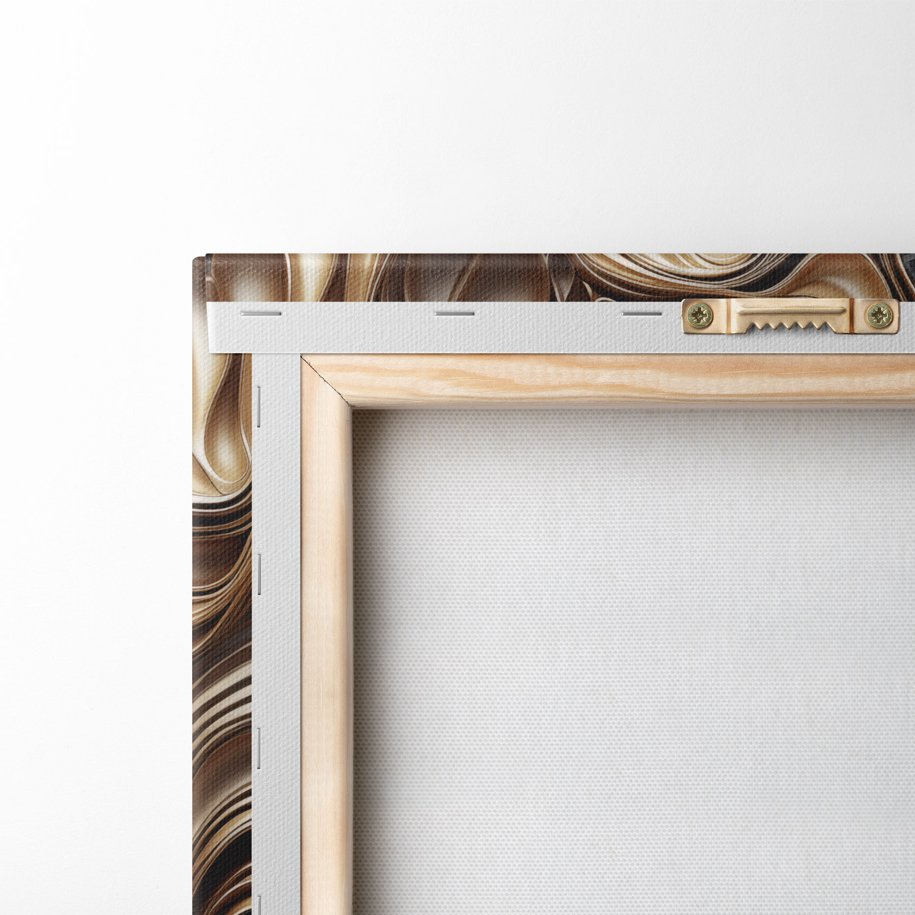 Um die Leinwand auf Keilrahmen zu spannen, ohne das Bild zu beschädigen, verwenden wir ein gespiegeltes Bild.