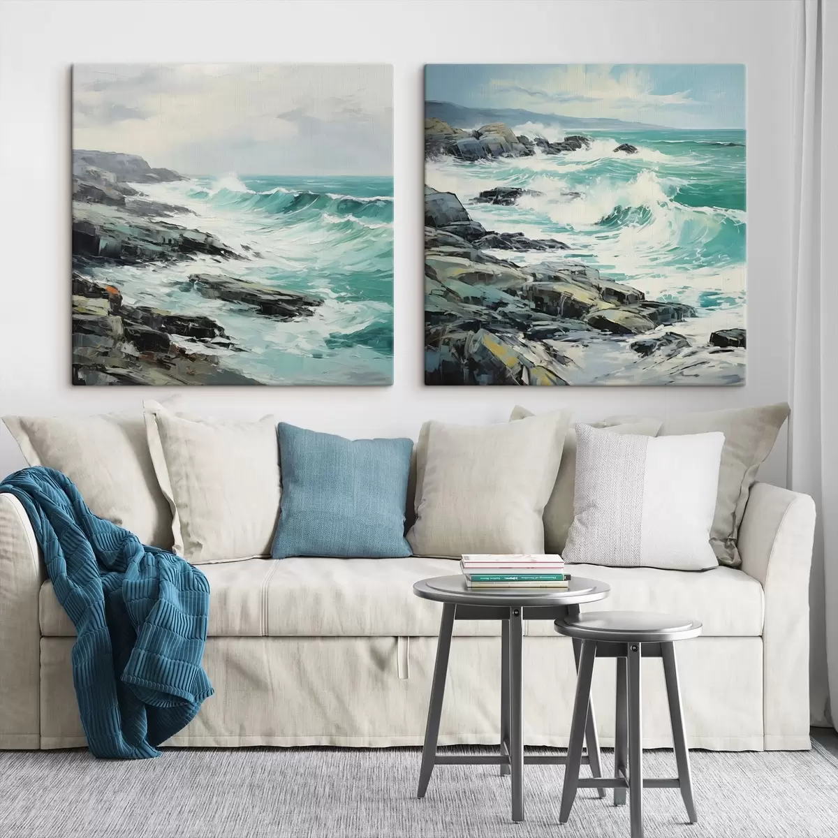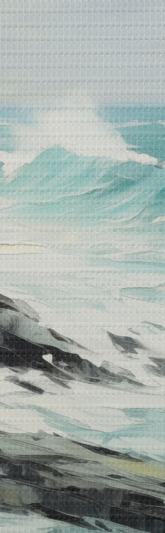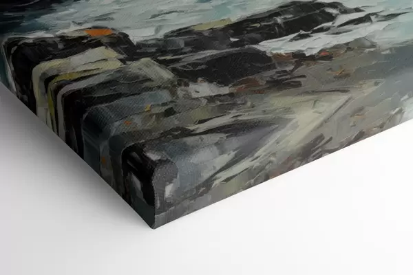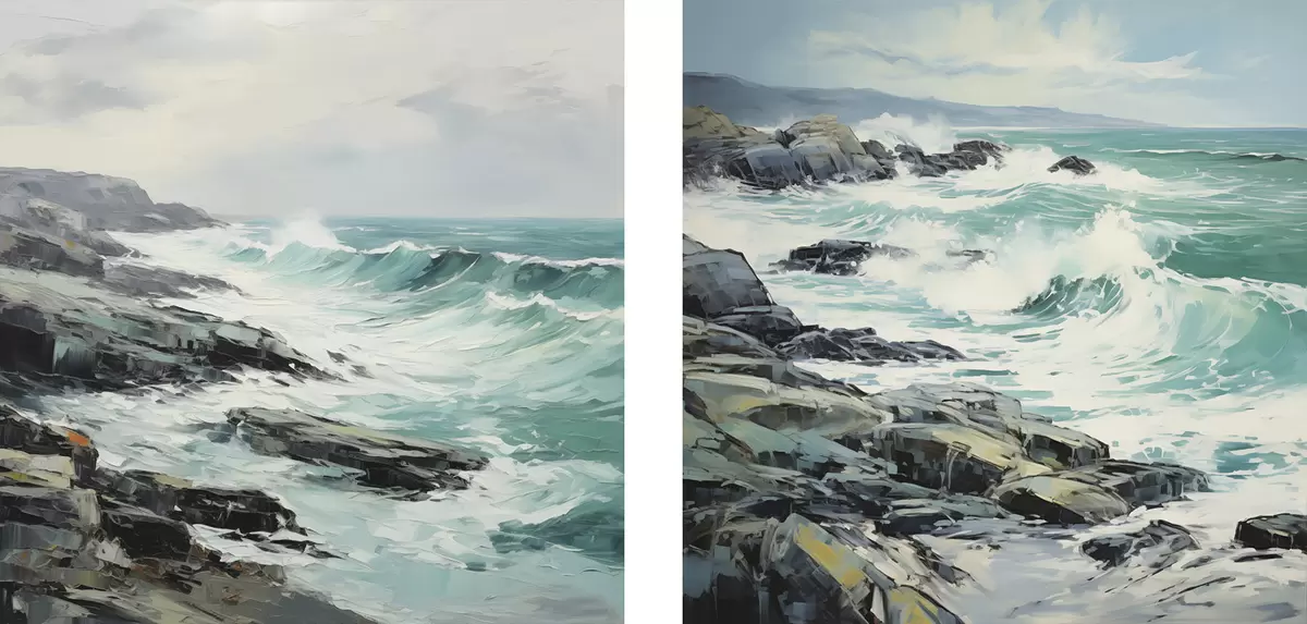 Gemälde Eine felsige Küstenlandschaft mit Wellen unter bewölktem Himmel, im Stil eines Gemäldes Art. m30198