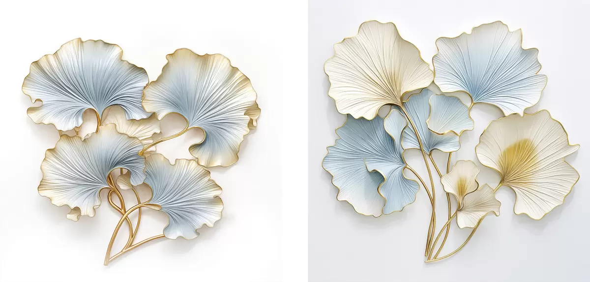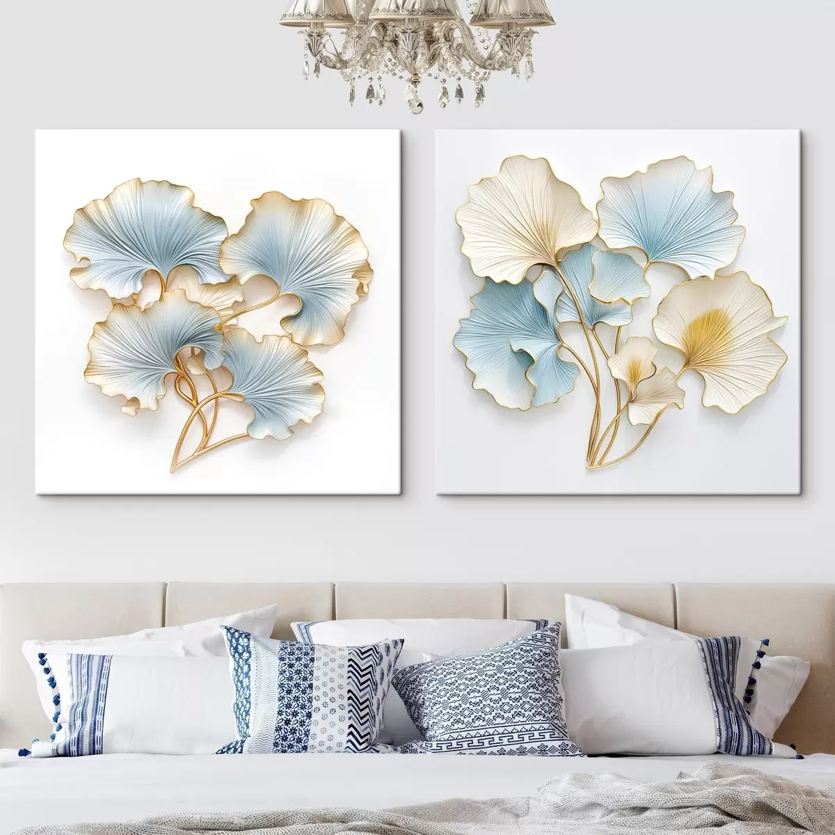 Gemälde Stilisierte Ginkgoblätter mit blauen und gelben Akzenten Art. m30203