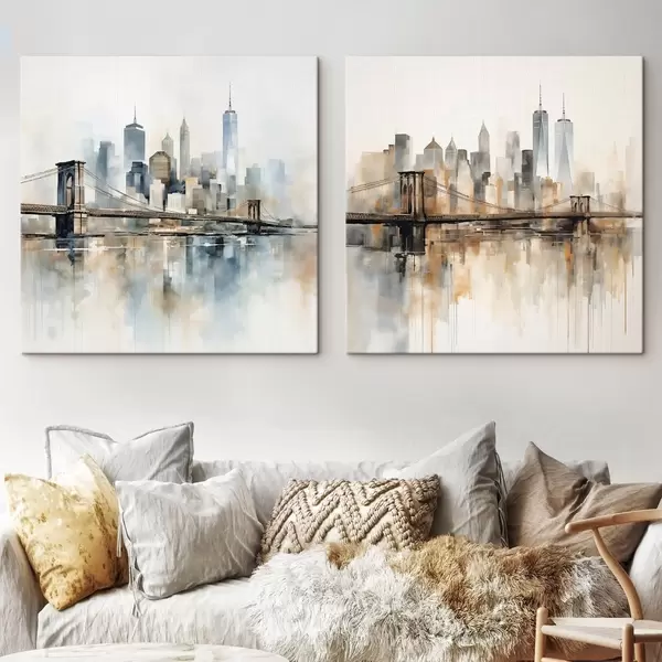 Gemälde Abstrakte Stadt-Skyline im Aquarellstil Art. m30207