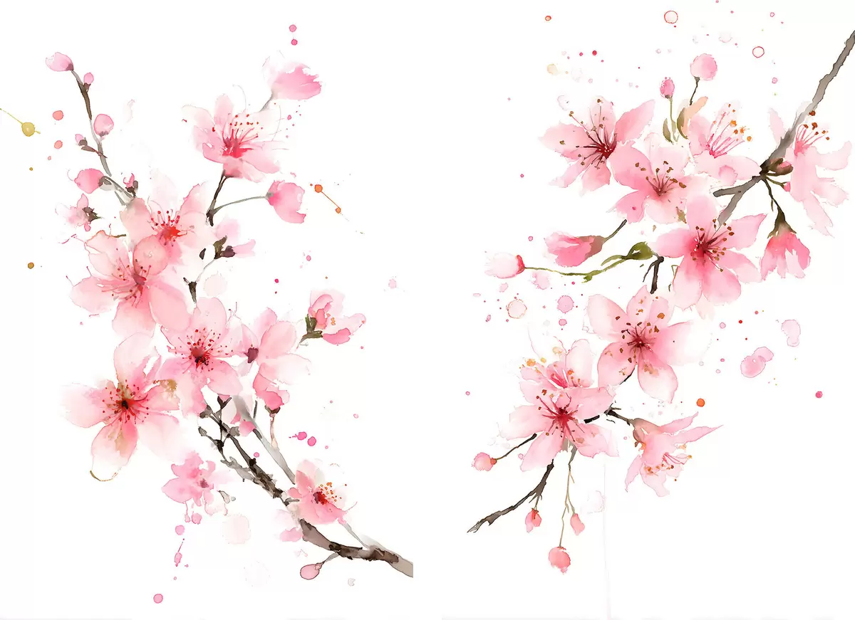 Fototapete blühende Aprikosenzweige im Aquarellstil m30257