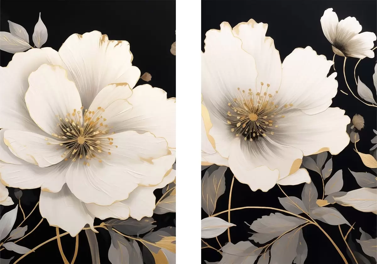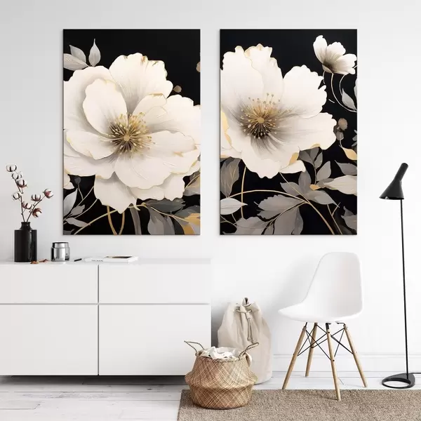Gemälde weiße Blumen auf schwarzem Hintergrund Art. m30280