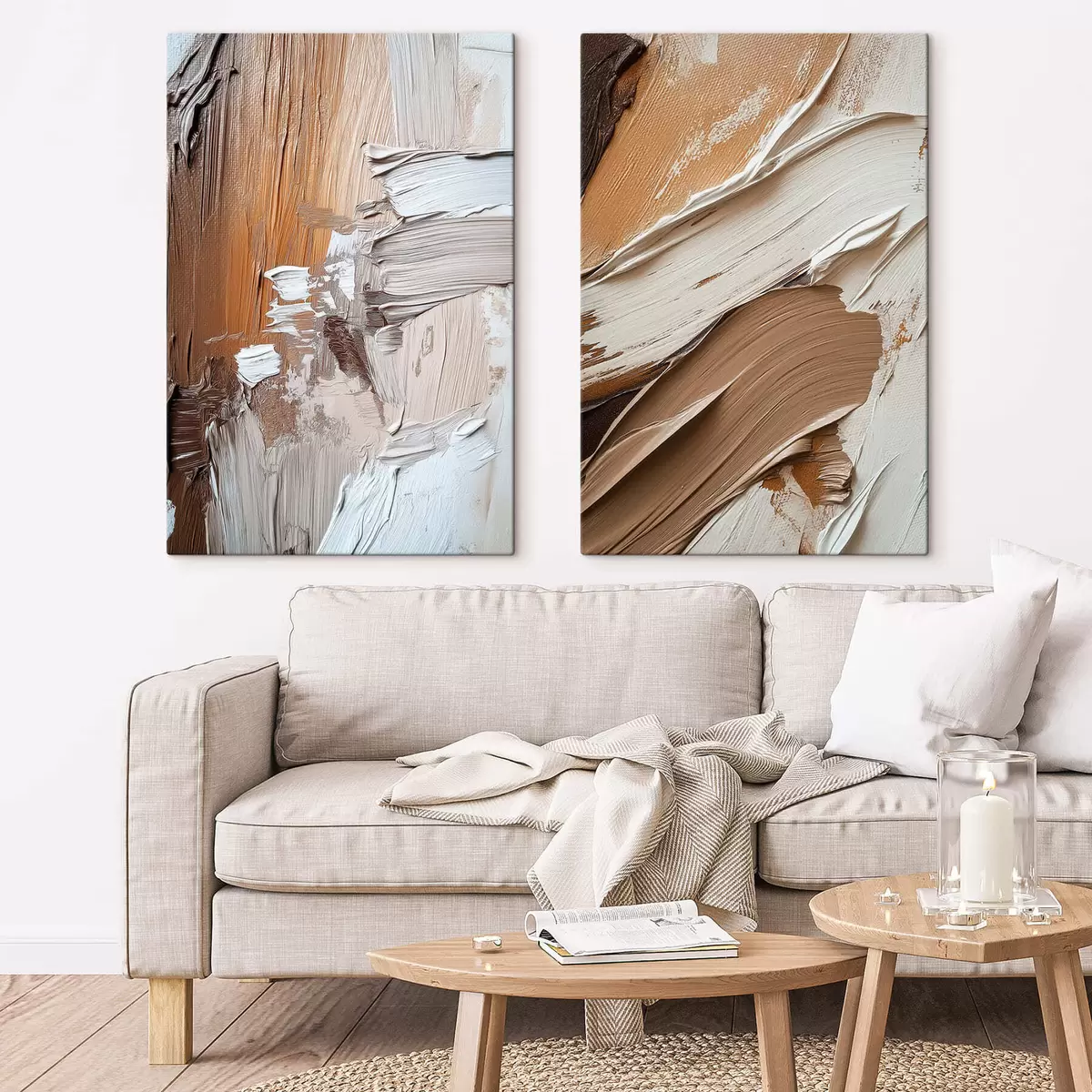 Drei Materialtypen stehen zur Verfügung: Economic Canvas - ein dichtes und haltbares Material für den Digitaldruck, identisch mit Malerleinwand, wasserfeste Oberfläche, realistische Wiedergabe von Details, mittelkörniges Material. Premium Canvas - die Textur ähnelt der einer Malerleinwand (verwobene kleine Fäden). Weiche, detaillierte Wiedergabe des Bildes auf einer matten Oberfläche. Eco-Premium - hochwertiges Gewebe aus 100% Baumwolle. Dank der natürlichen Baumwollfasern ist das Material langlebig und verschleißfest. Hervorragende Farbwiedergabe und Detailtreue.