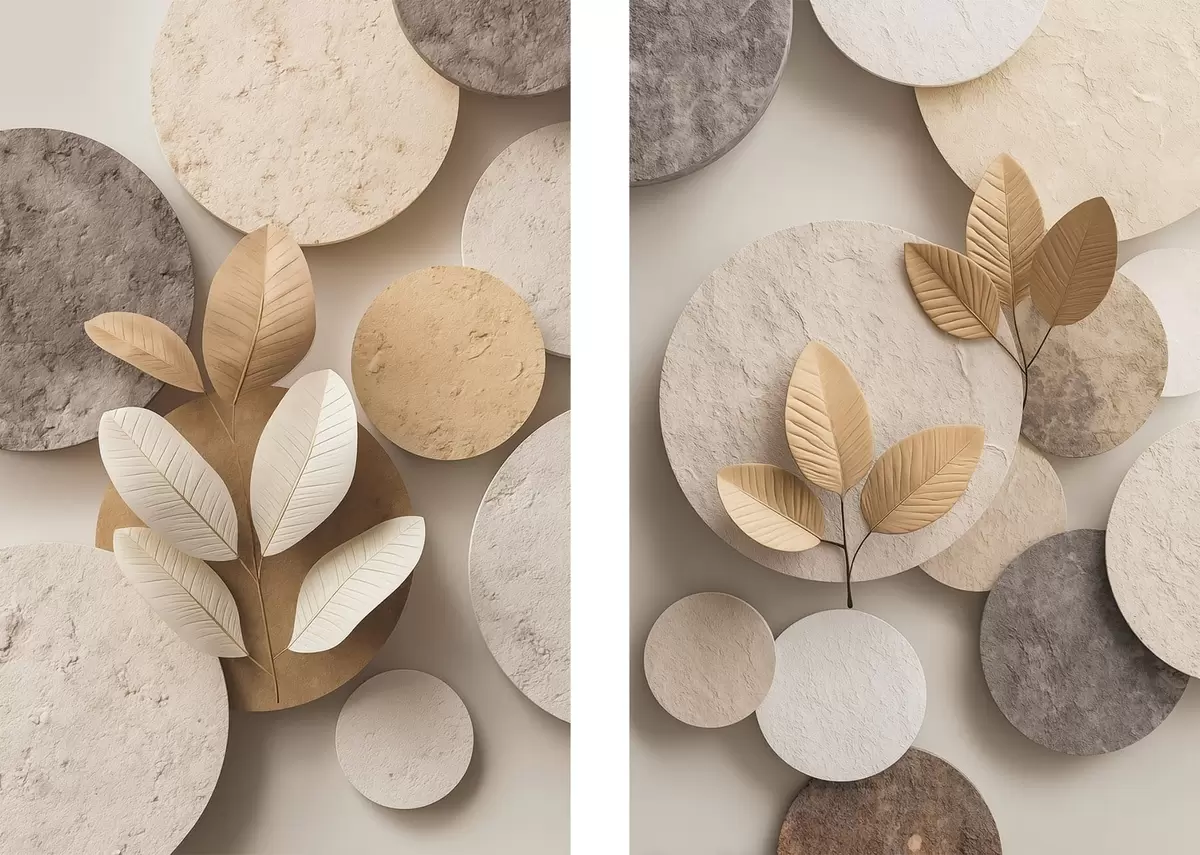 Fototapete Kompositionen mit Blättern und Kreisen m30292