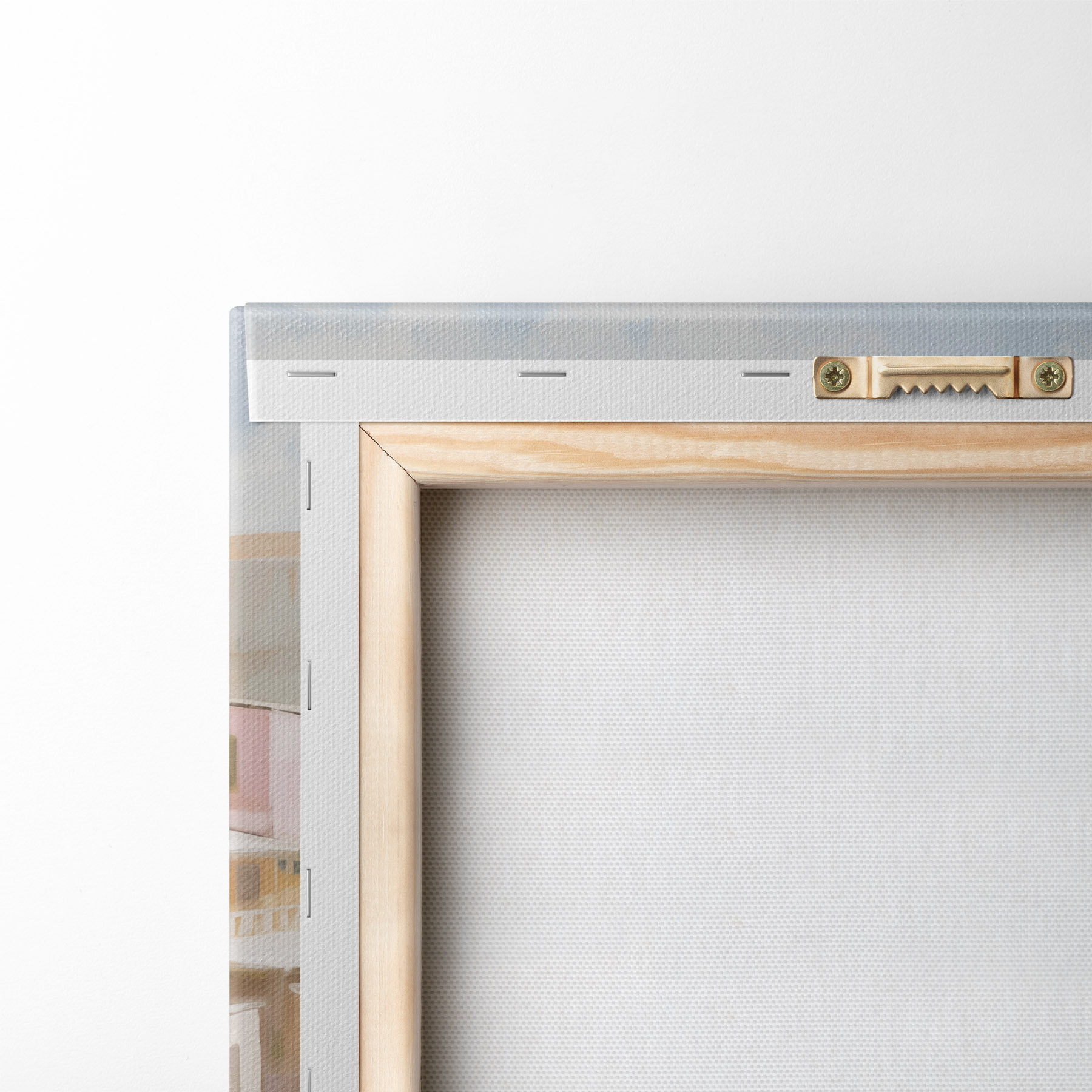 Um die Leinwand auf Keilrahmen zu spannen, ohne das Bild zu beschädigen, verwenden wir ein gespiegeltes Bild.
