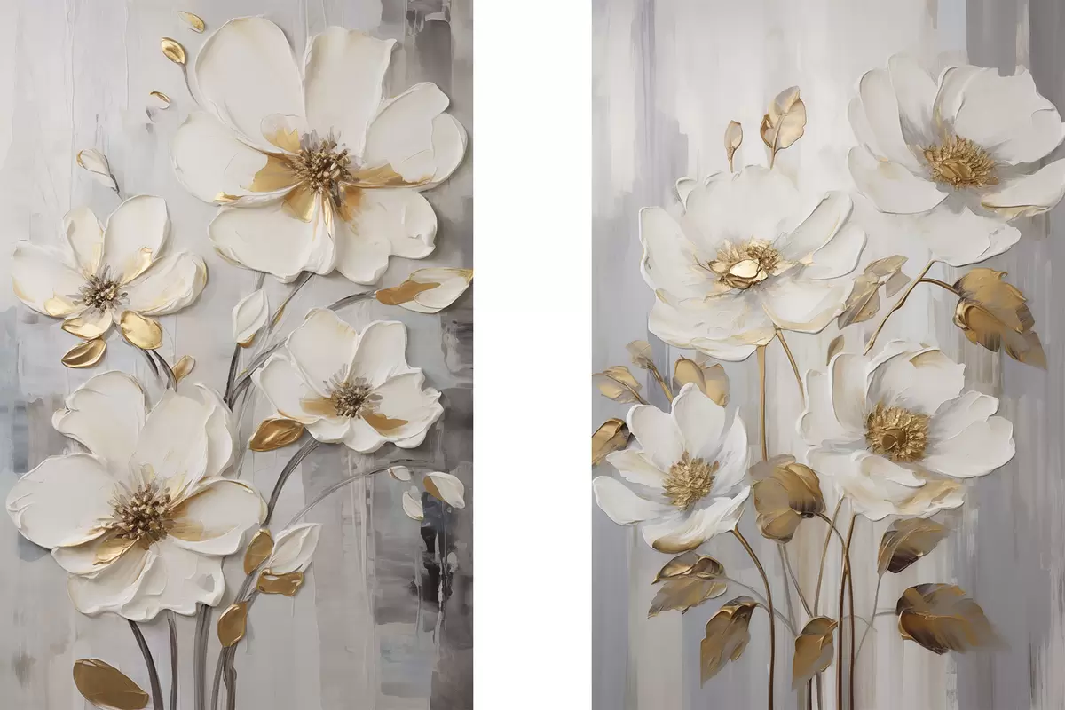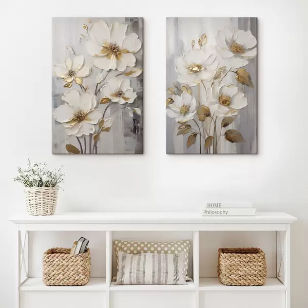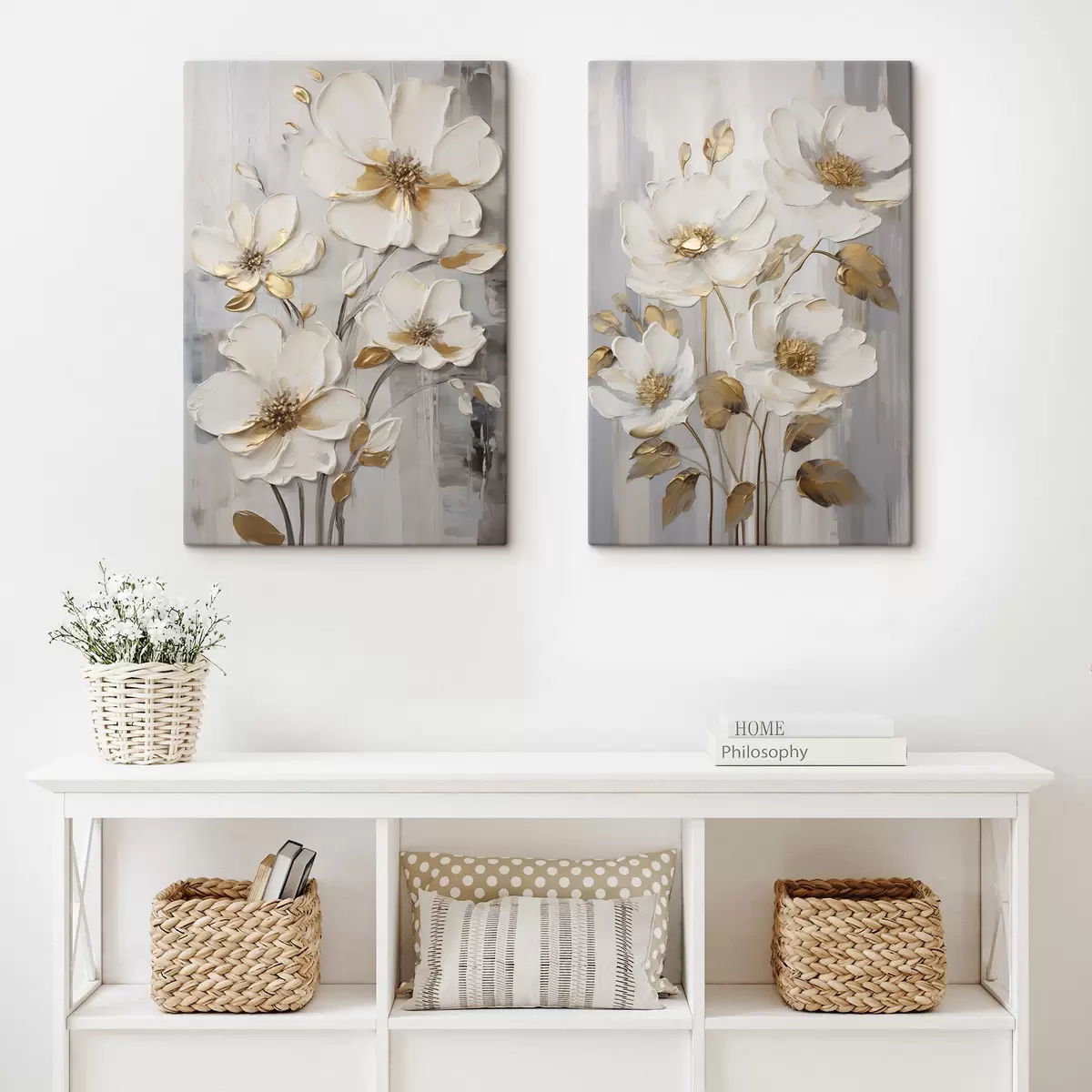 Gemälde Weiße Blumen mit gelben Akzenten auf einem strukturierten Hintergrund Art. m30311