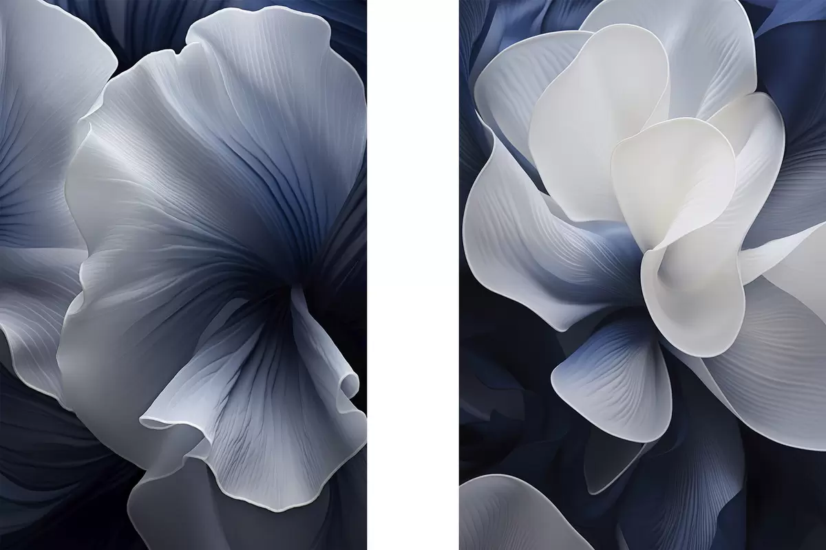 Fototapete Abstrakte blau-weiße Blütenblätter vor dunklem Hintergrund m30316