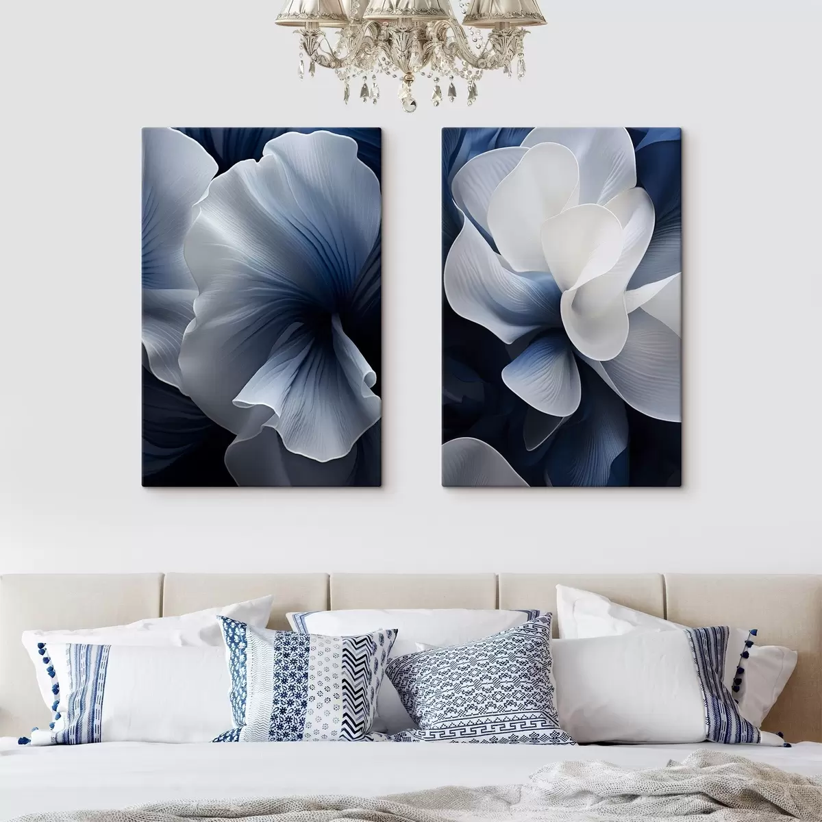 Gemälde Abstrakte blau-weiße Blütenblätter vor dunklem Hintergrund Art. m30316