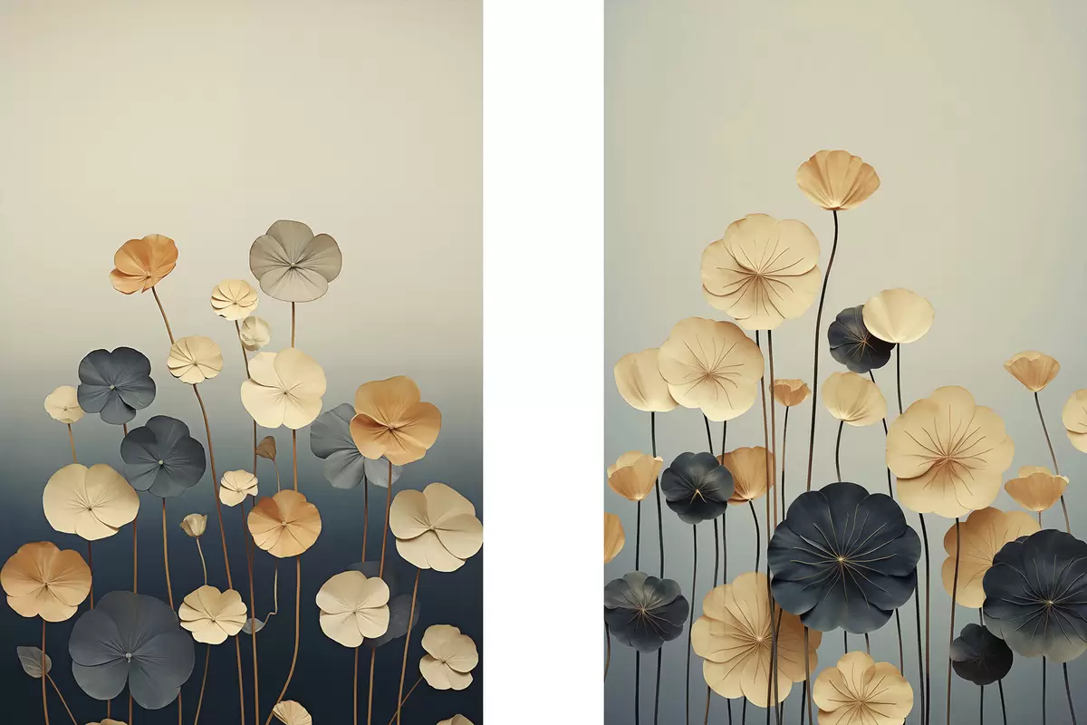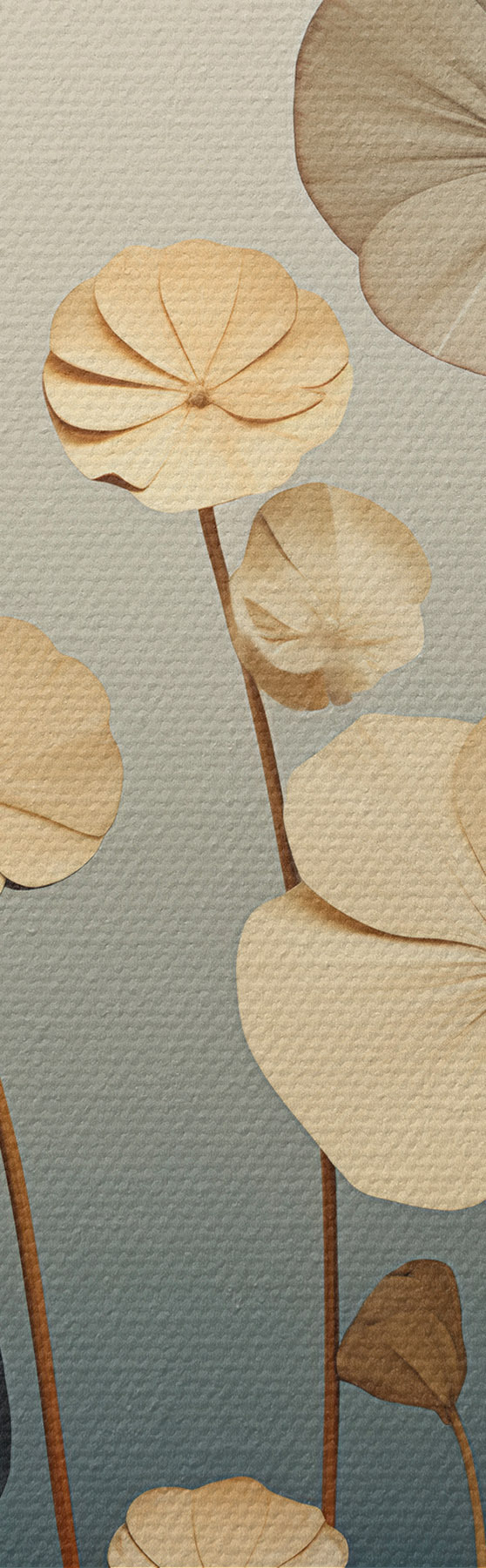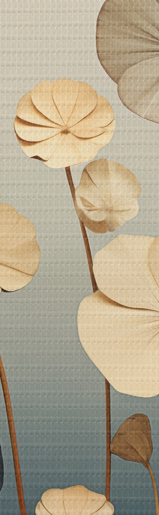 Fototapete Seerosenblätter vor einem gedämpften Hintergrund aus Beige und Dunkelblau m30317