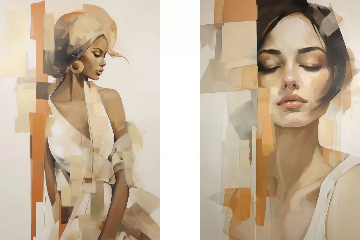 Gemälde Abstraktes Frauenporträt mit orangefarbenen und beigen Formen Art. m30318