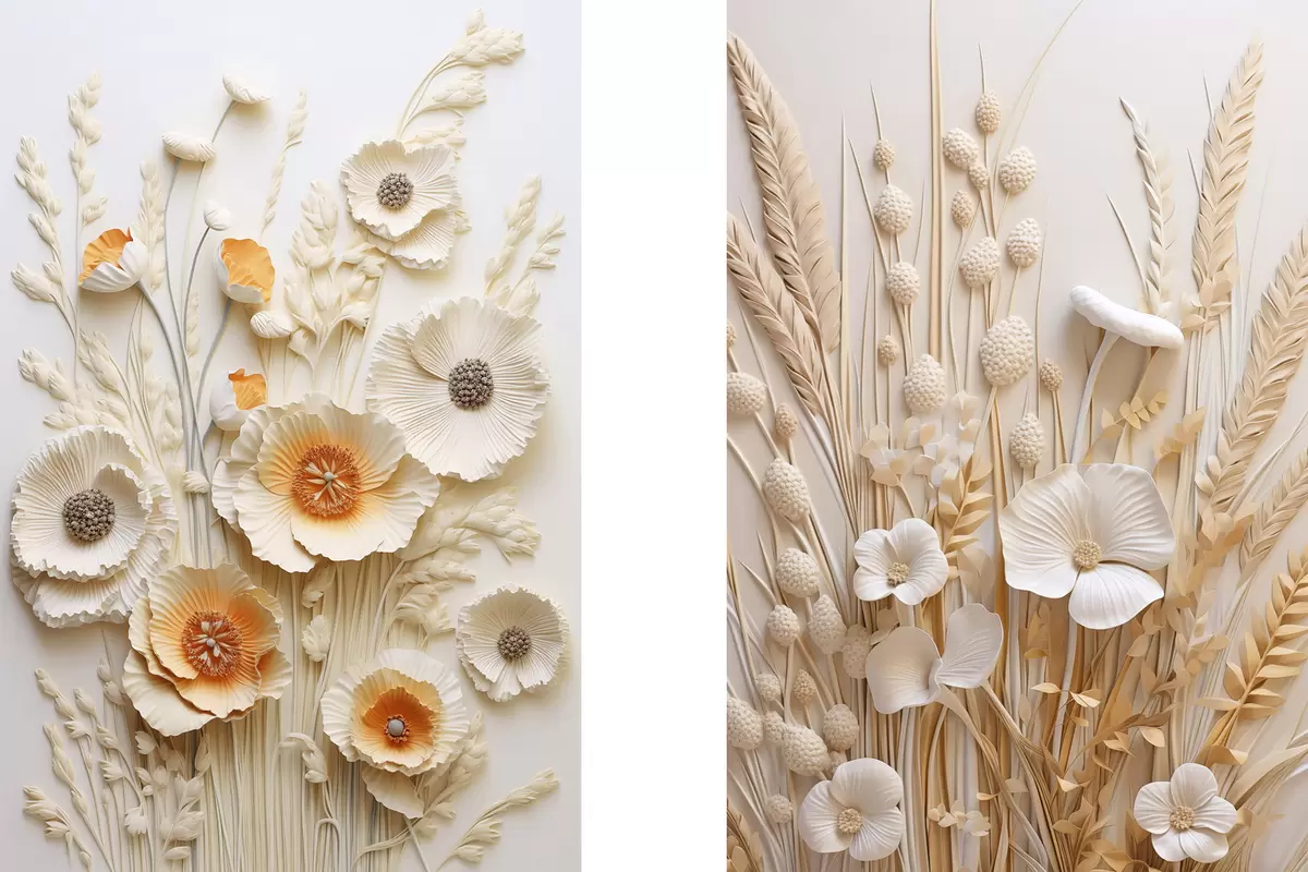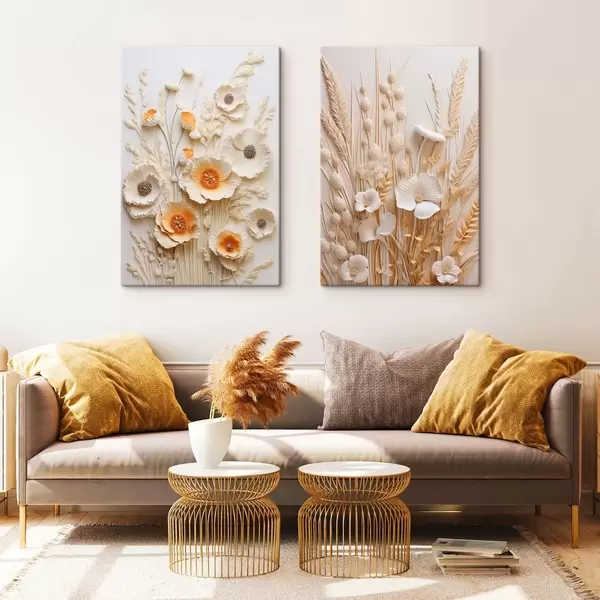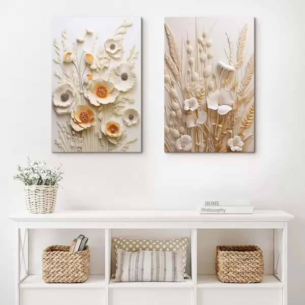 Gemälde Ein Strauß aus cremefarbenen und orangefarbenen Mohnblumen mit getrockneten Weizenhalmen Art. m30324