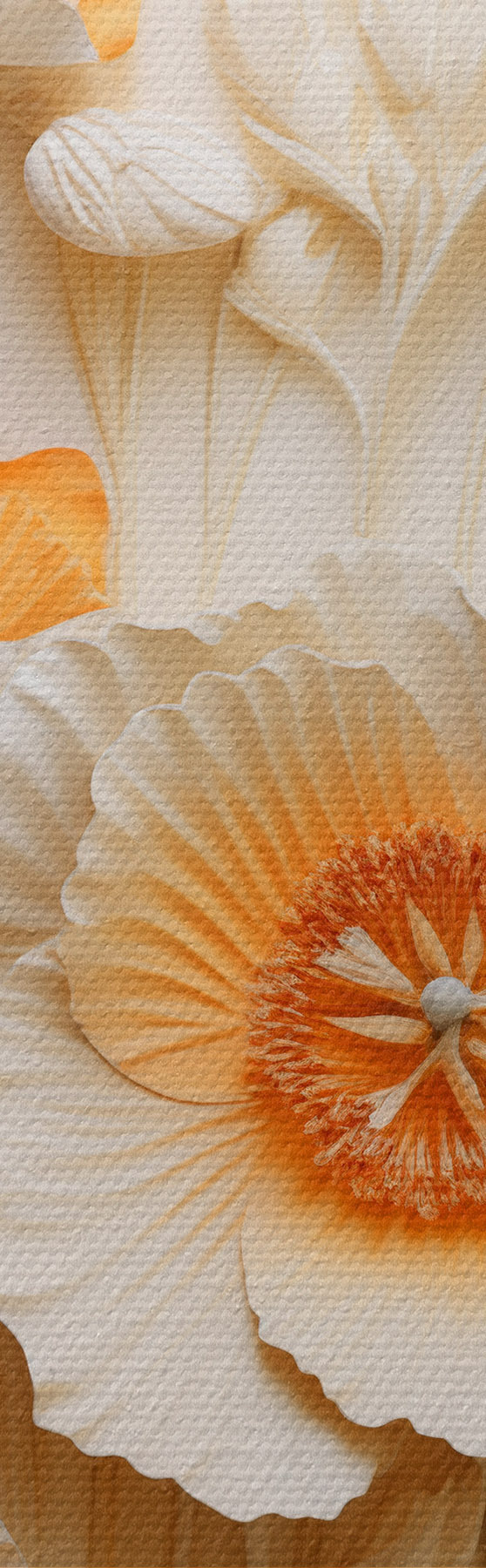 Fototapete Ein Strauß aus cremefarbenen und orangefarbenen Mohnblumen mit getrockneten Weizenhalmen m30324