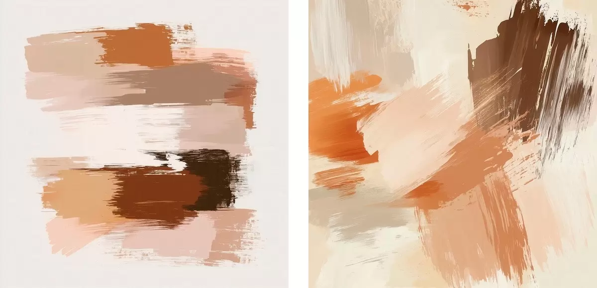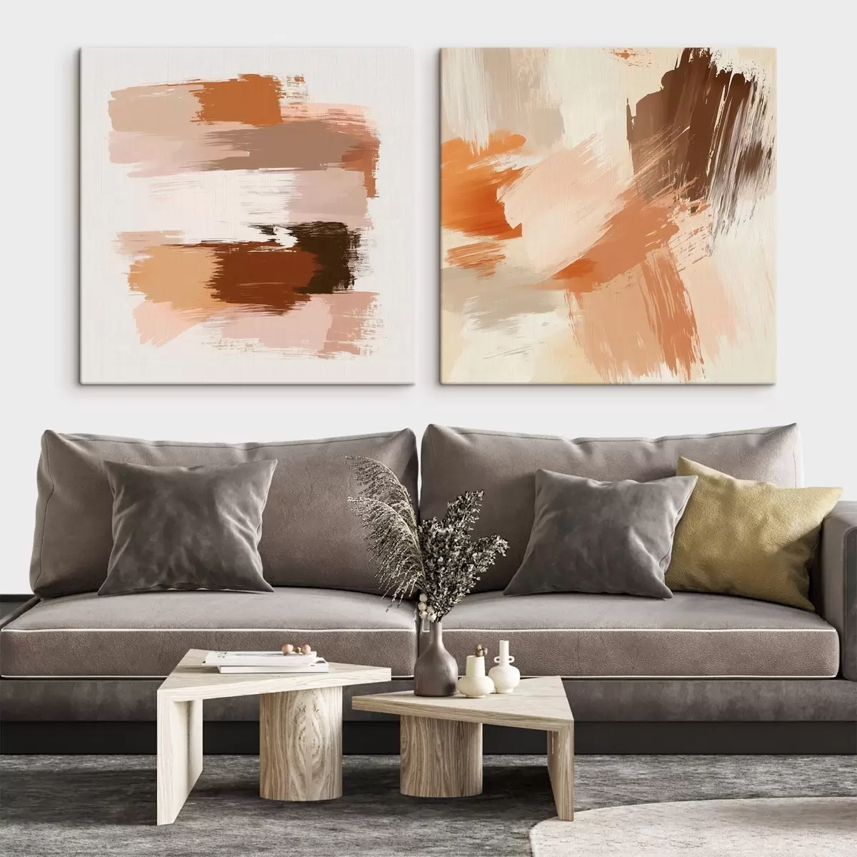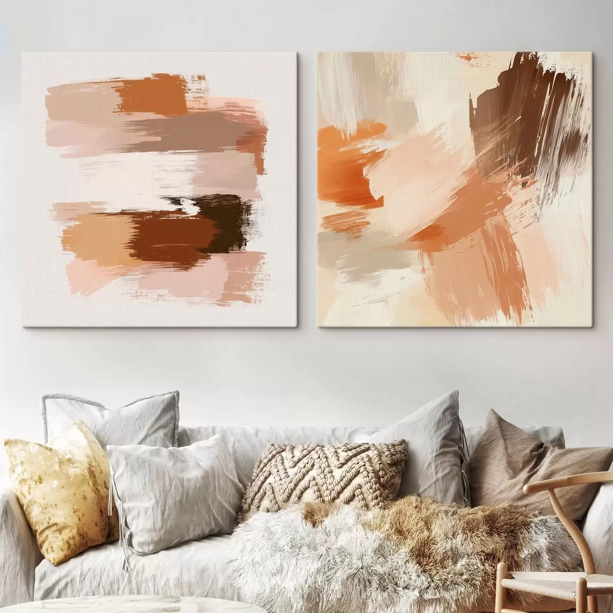 Gemälde Dekorative Kunst in warmen Braun-Beige-Tönen mit malerischem Pinselstrich-Effekt Art. m30355